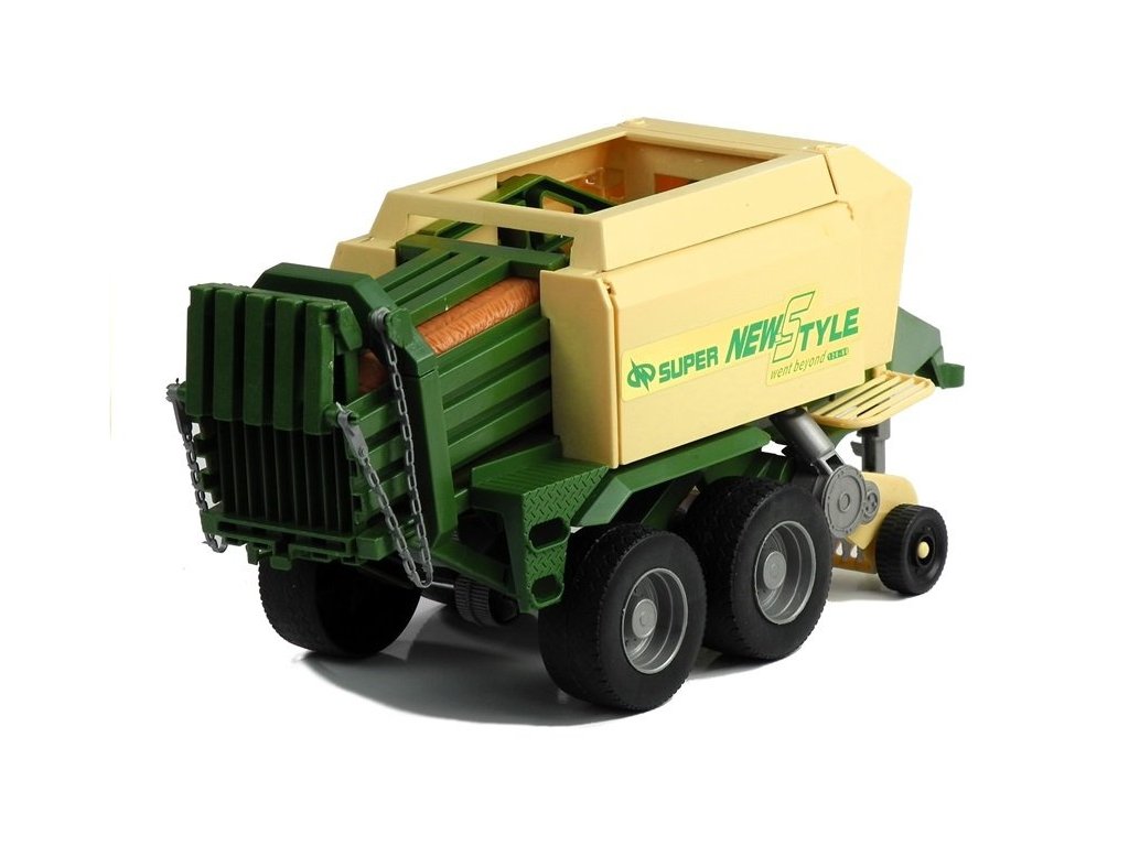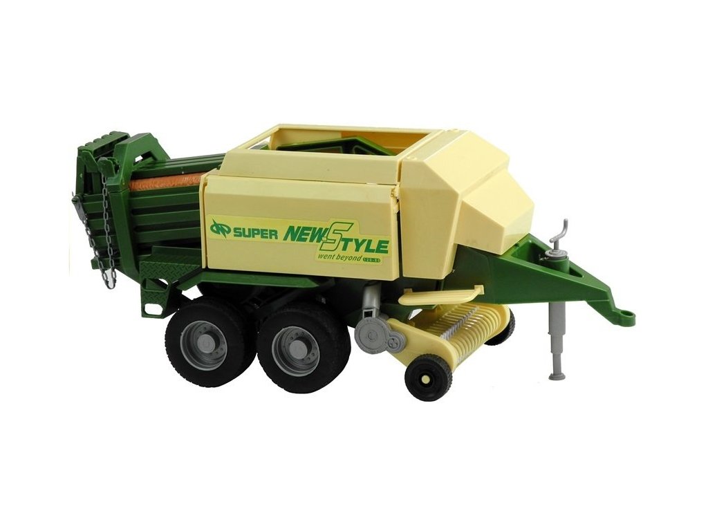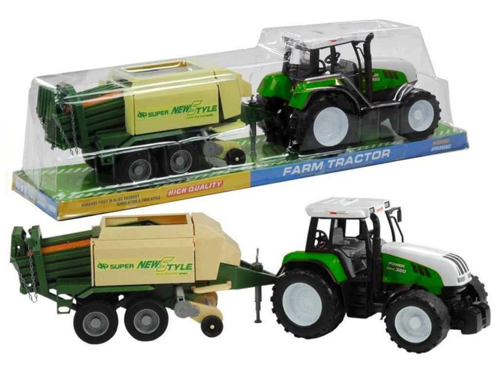 Prezentovaná sada je vyrobena z certifikovaných materiálů nejvyšší kvality, díky čemuž se vyznačuje nejen přesným zobrazením plnohodnotného stroje, ale také odolností. Traktor na hraní je vozidlo impozantní velikosti, takže ho při hraní může využít i malý farmář k přepravě důležitých věcí. Ve spojení s přívěsem v podobě lisu na slámu dosahuje délky 65 cm, což určitě osloví i batole. Přívěs má pohyblivé prvky, jako je výsuvná podpěra lisu, otočný sběrač a také otevírací boční a zadní klapky. Traktor má pohon zadních kol, což značně zpestřuje zábavu.