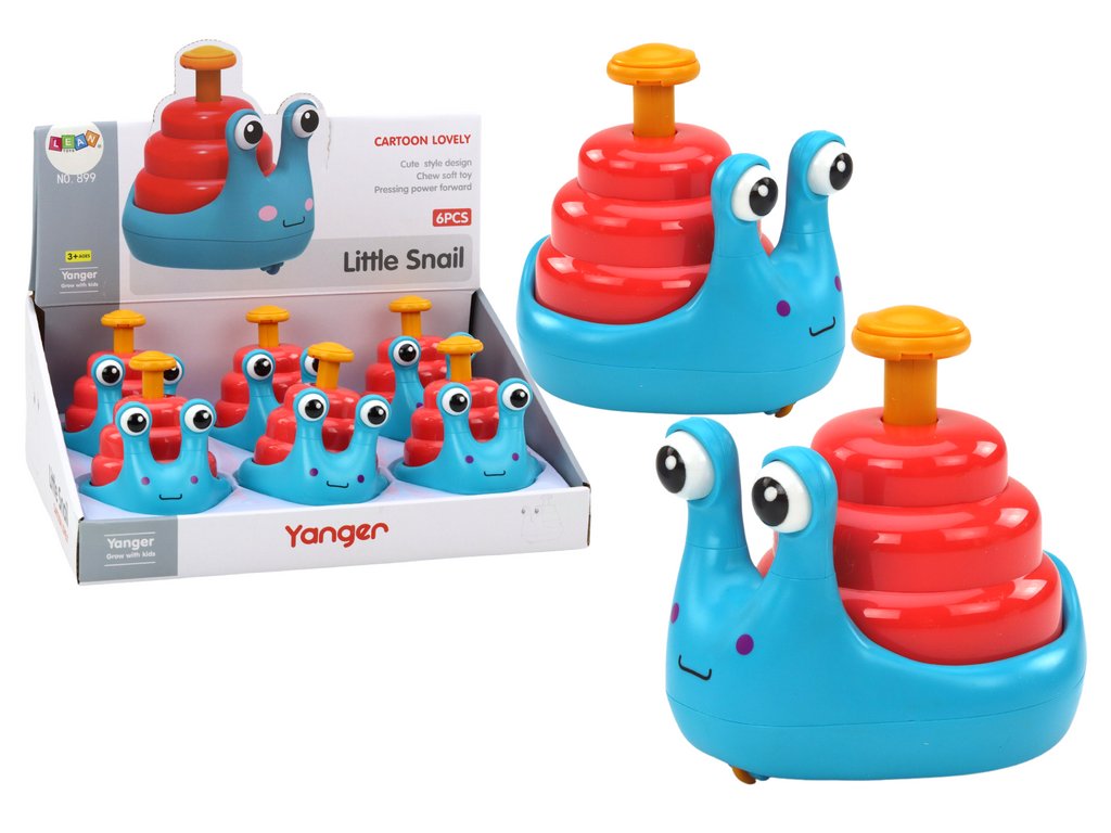 Šnek je vyroben v atraktivní modré barvě s červenou ulitou, která přitahuje pozornost dětí a podněcuje jejich zvědavost. Navíc je díky pevné konstrukci bezpečný pro děti a je to vynikající senzorická hračka.