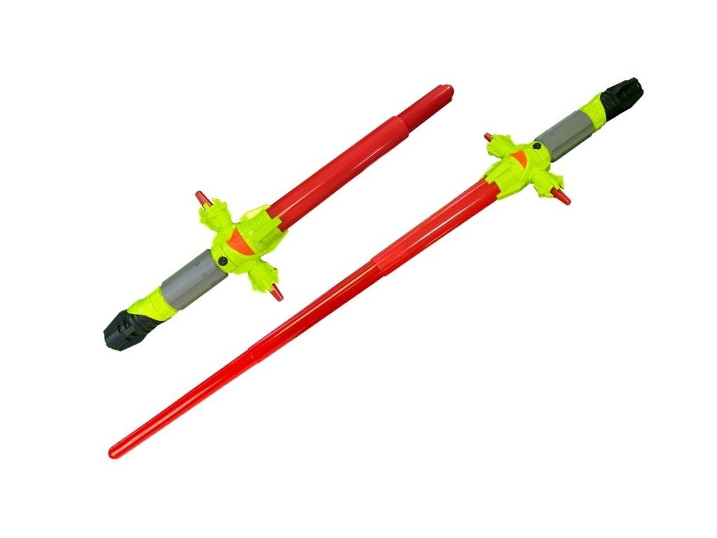 Světelný meč funguje tak, že stisknete tlačítko ve střední části rukojeti a je velmi snadné jej vytáhnout – stačí s ním zatřepat dopředu a pomůžete tak vyhrát boj. Po stisknutí spouště se pistole také rozsvítí a vydává zvuky, takže se vyplatí hračku vyzkoušet v temné místnosti.
