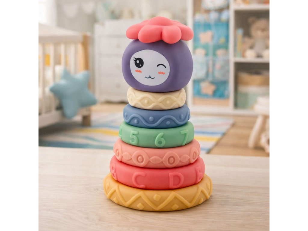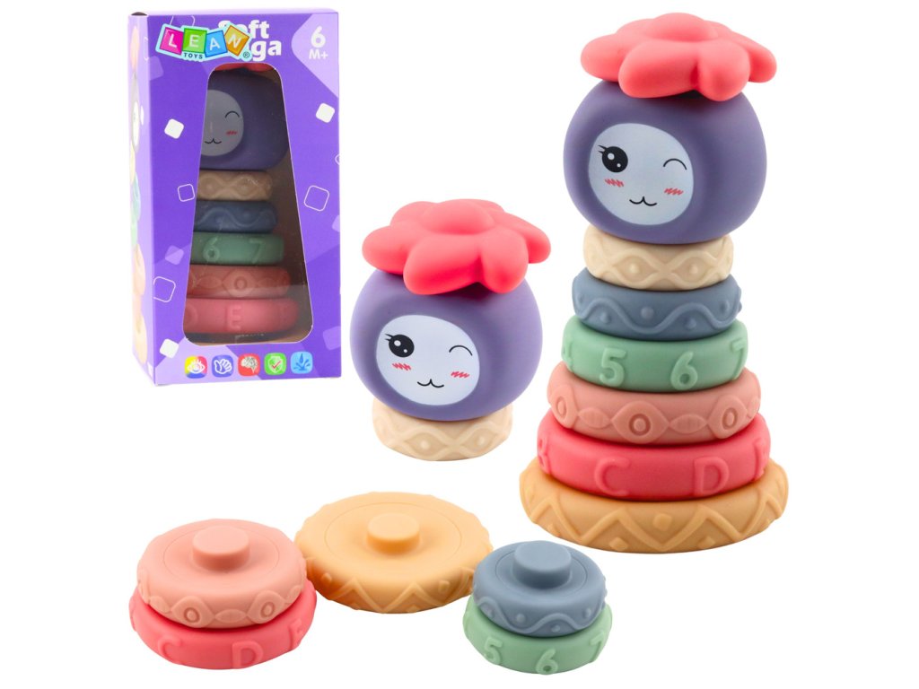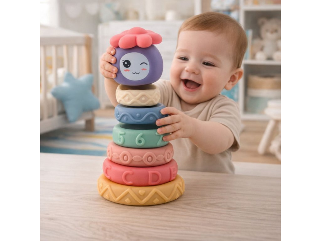 MĚKKÉ SENZORICKÉ BLOKY PYRAMIDA BAREVNÁ VĚŽ PUZZLE 8 DÍLŮ