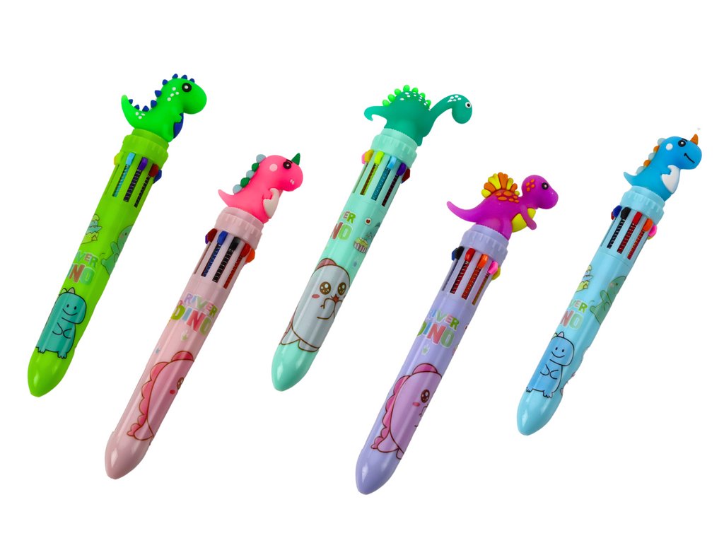 Vícebarevné automatické pero s dinosaurem 10 barev Mix