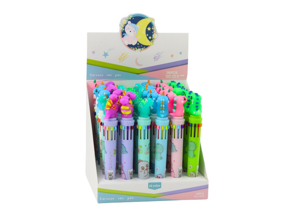 Vícebarevné automatické pero Dinosaur 10 barev Mix