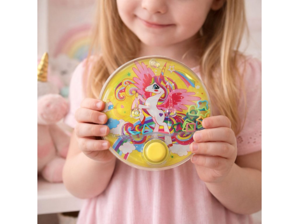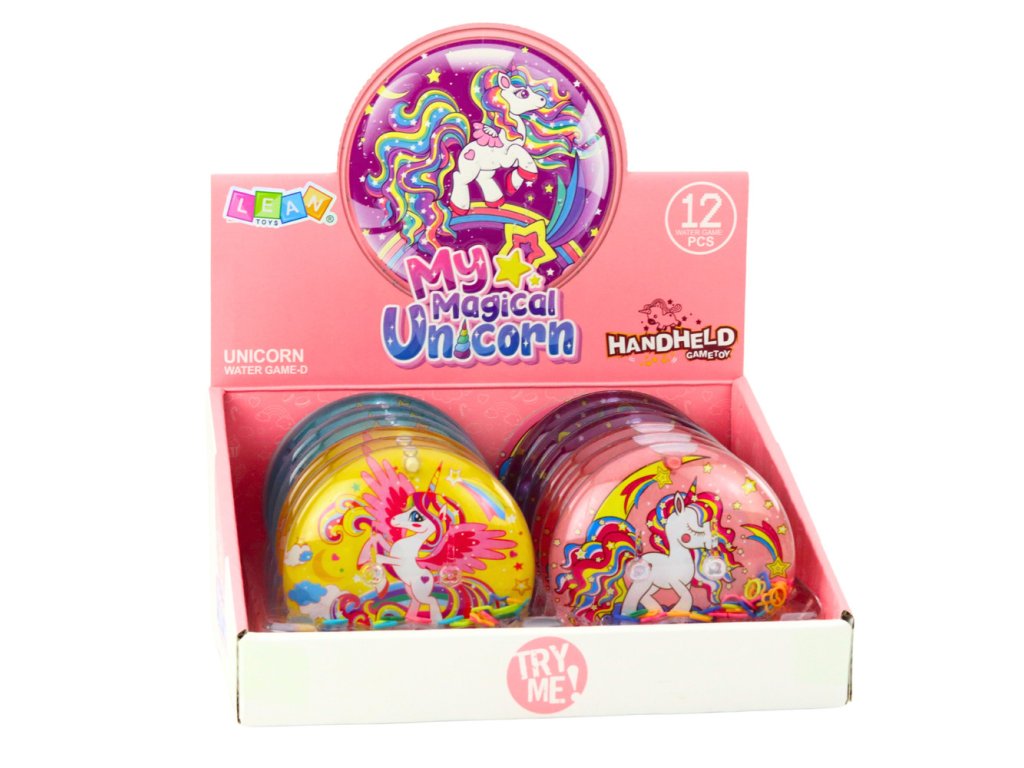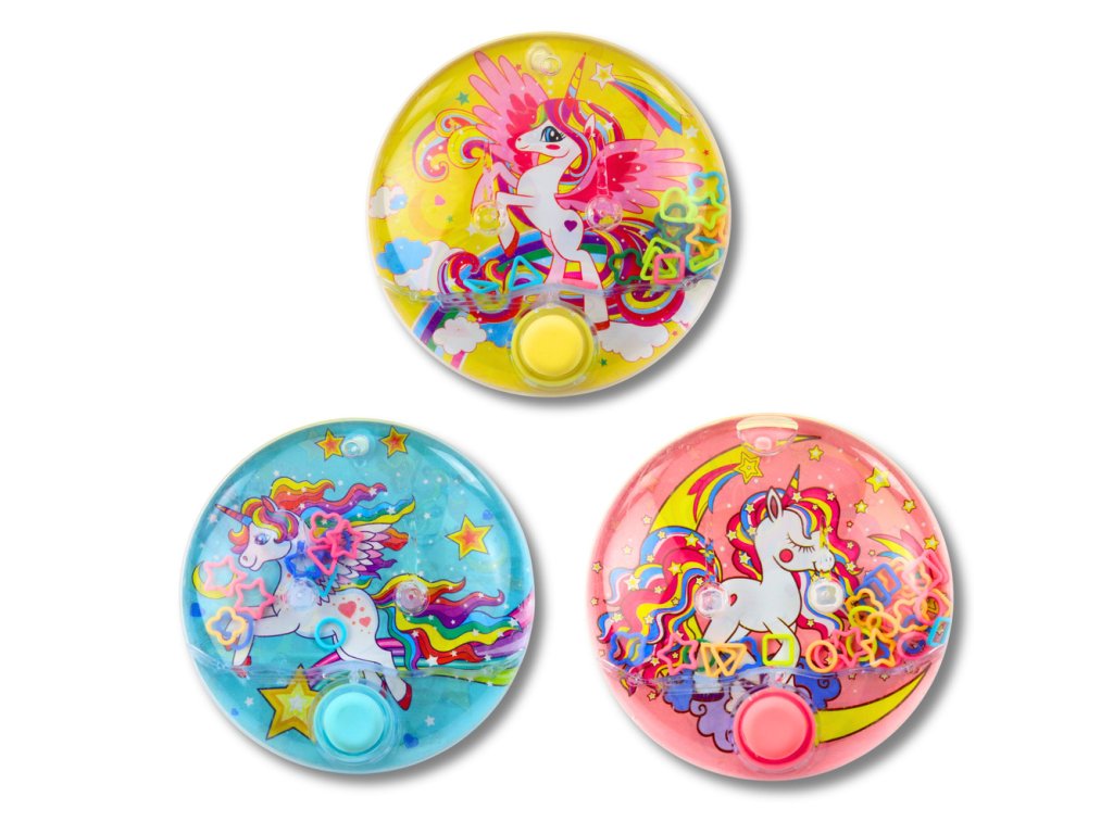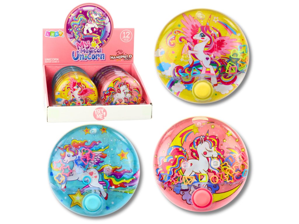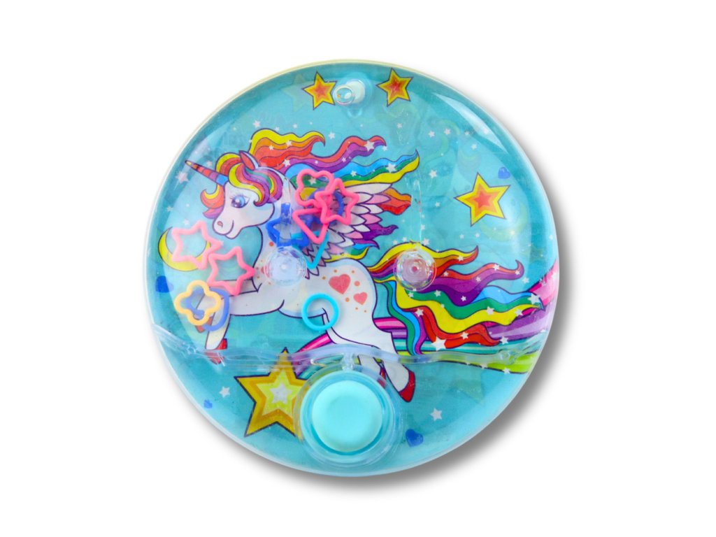 Vodní arkádová hra – unicorn, barevná, kruh 10 cm