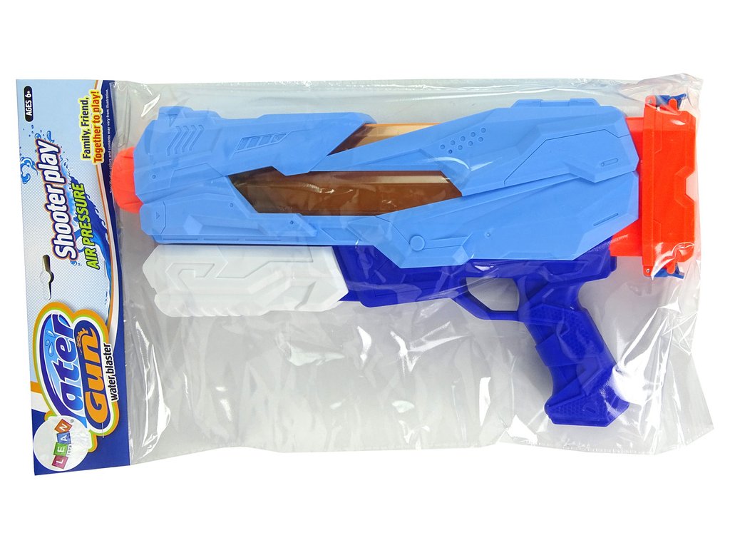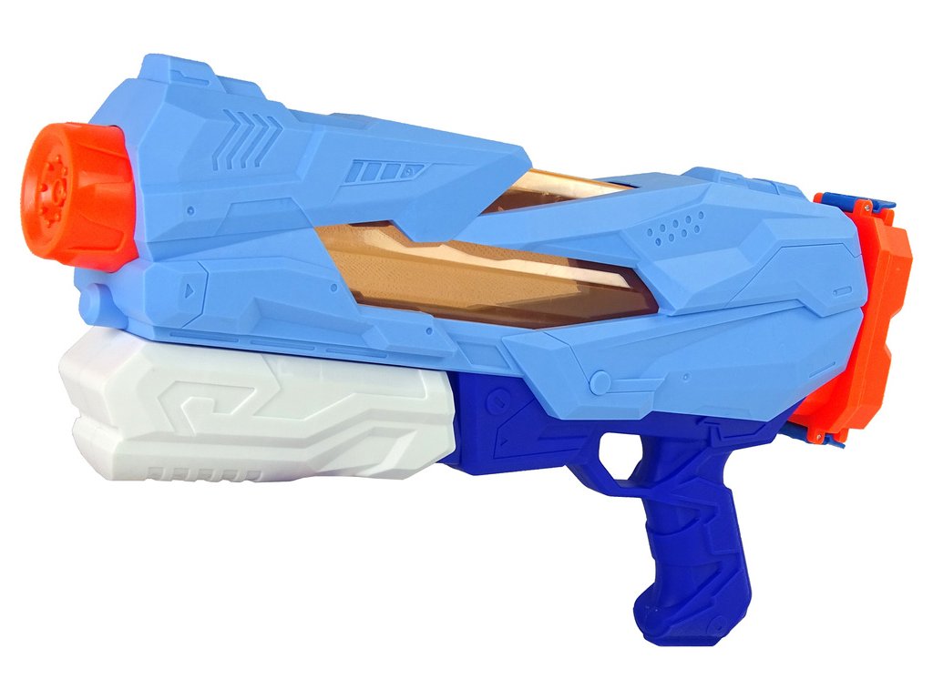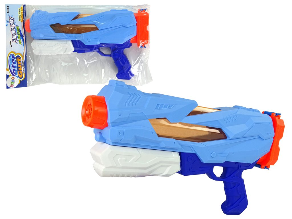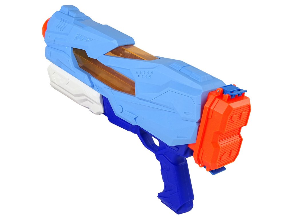 Představená vodní pistole je v bílé a modré barvě s oranžovými prvky. Munice, kterou je voda, je bezpečná a můžete se pustit do potyčky s rodinou nebo vrstevníky.