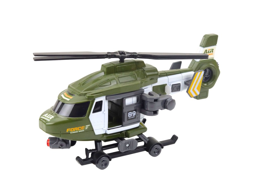 Vojenský vrtulník s hákem a nosítky, světla, zvuky, khaki 1:16