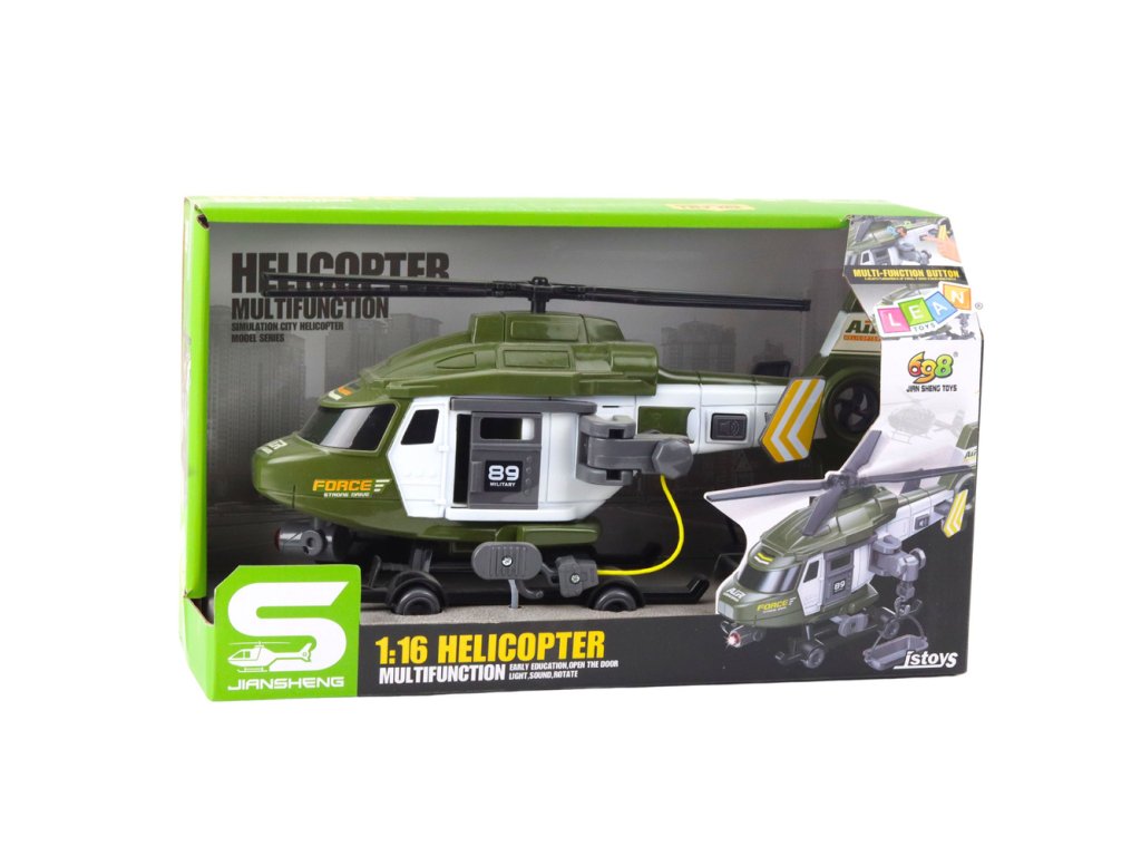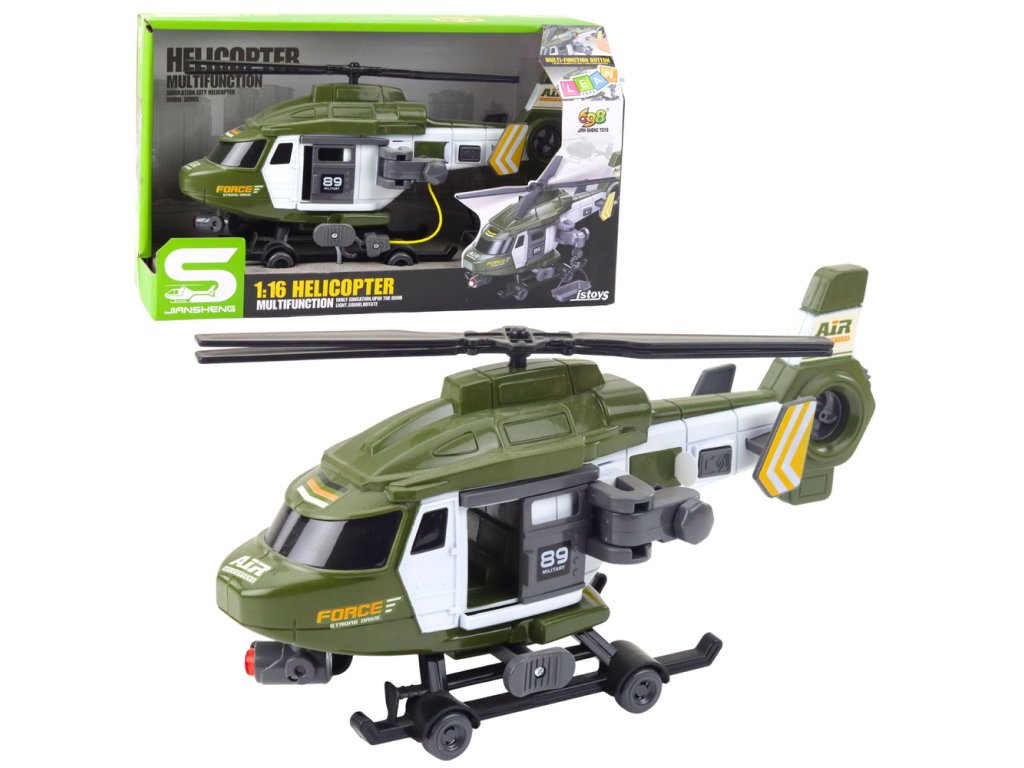 VOJENSKÝ VRTULNÍK V MĚŘÍTKU 1:16 SE SVĚTLY, ZVUKEM A POHYBLIVÝMI ČÁSTMI