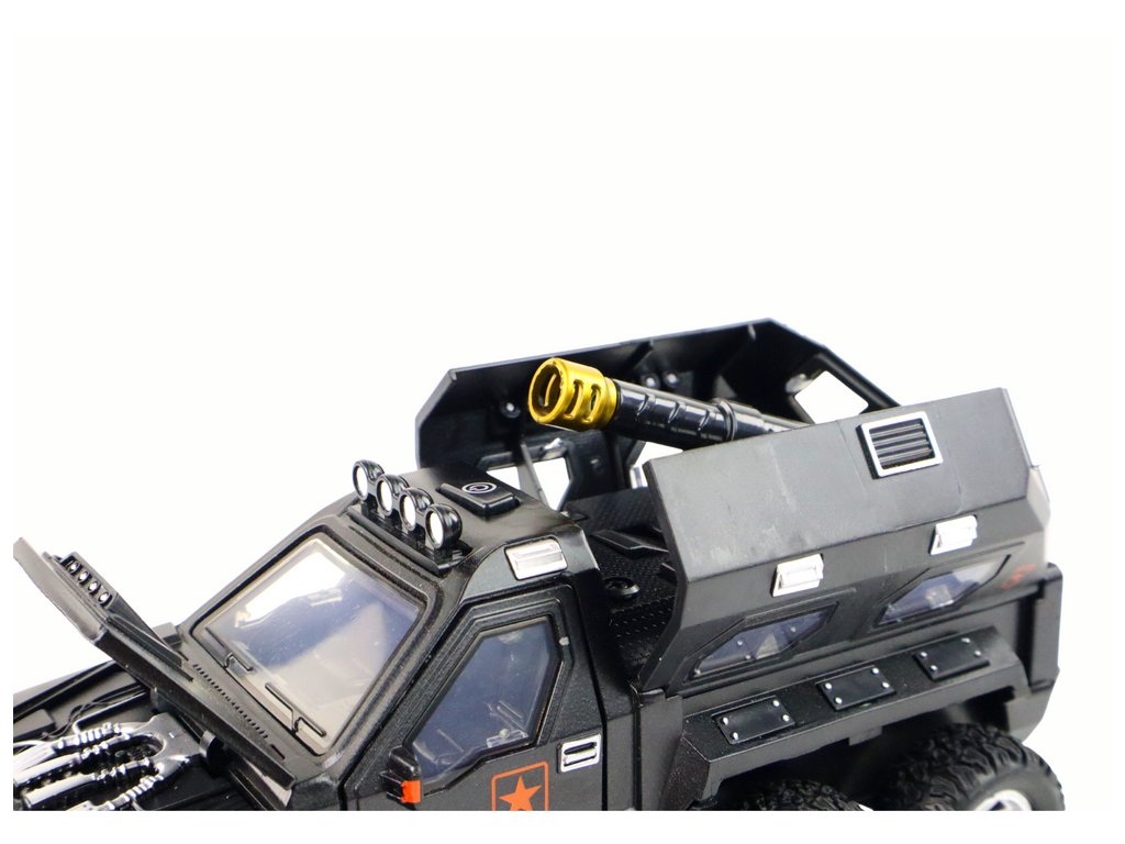 Vůz má třecí pohon, který usnadňuje manévrování. Po stisknutí tlačítka na horní části vozidla se otevřou dveře a z horní části vozidla se vysune realistické dělo. To je doprovázeno světelnými a zvukovými efekty, které dodávají emoce a realismus.