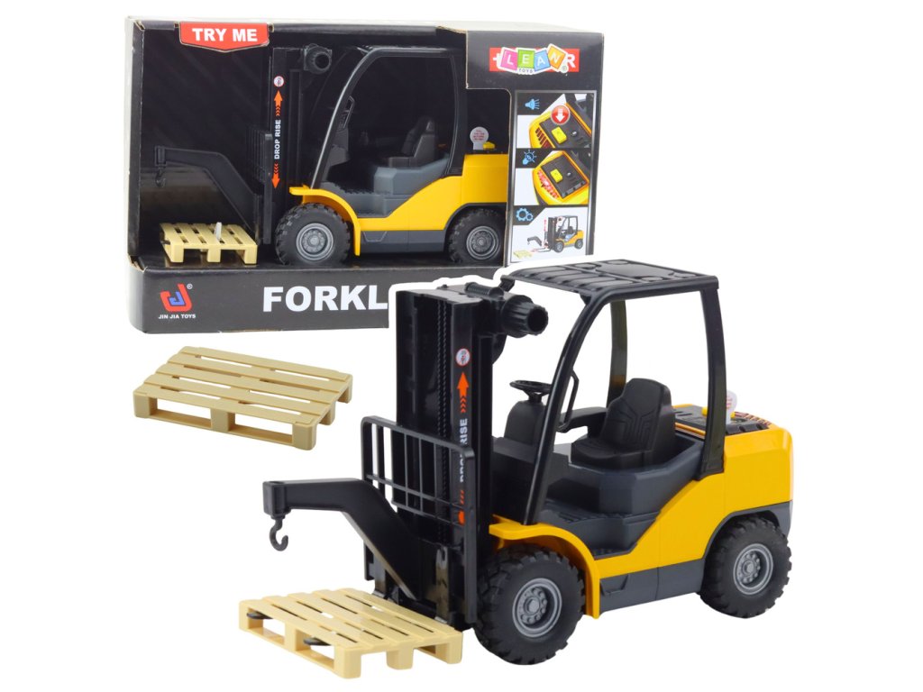 Vysokozdvižný vozík s pohyblivými vidlicemi, paletou, světla, zvuky, žlutý