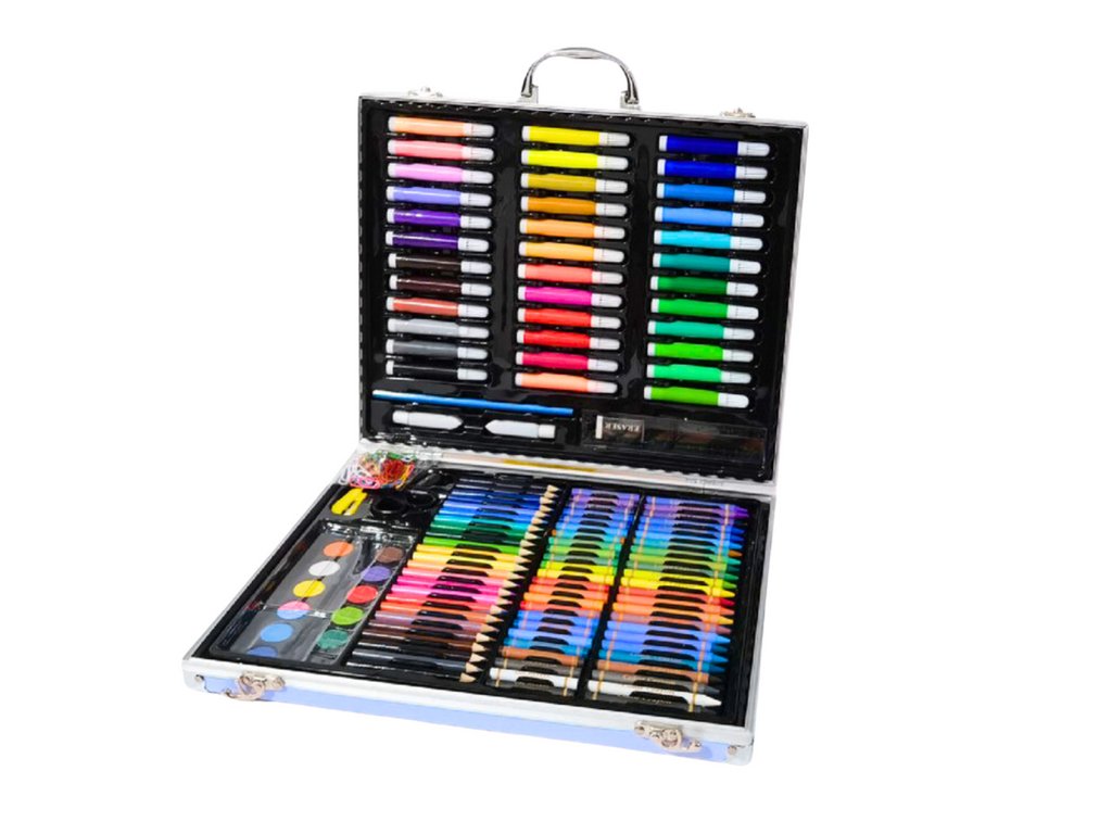 Sada obsahuje až 150 prvků, které uspokojí potřeby každého malého tvůrce. Uvnitř jsou různobarevné pastelky, které umožní kreslit a skicovat, pastely ideální pro vytváření jemných, měkkých barevných přechodů, a také barvy v mnoha odstínech, které umožňují malovat výrazné obrázky. Součástí jsou také štětce, díky nimž může dítě experimentovat s různými malířskými technikami, a tužky, které jsou základním nástrojem každého umělce.