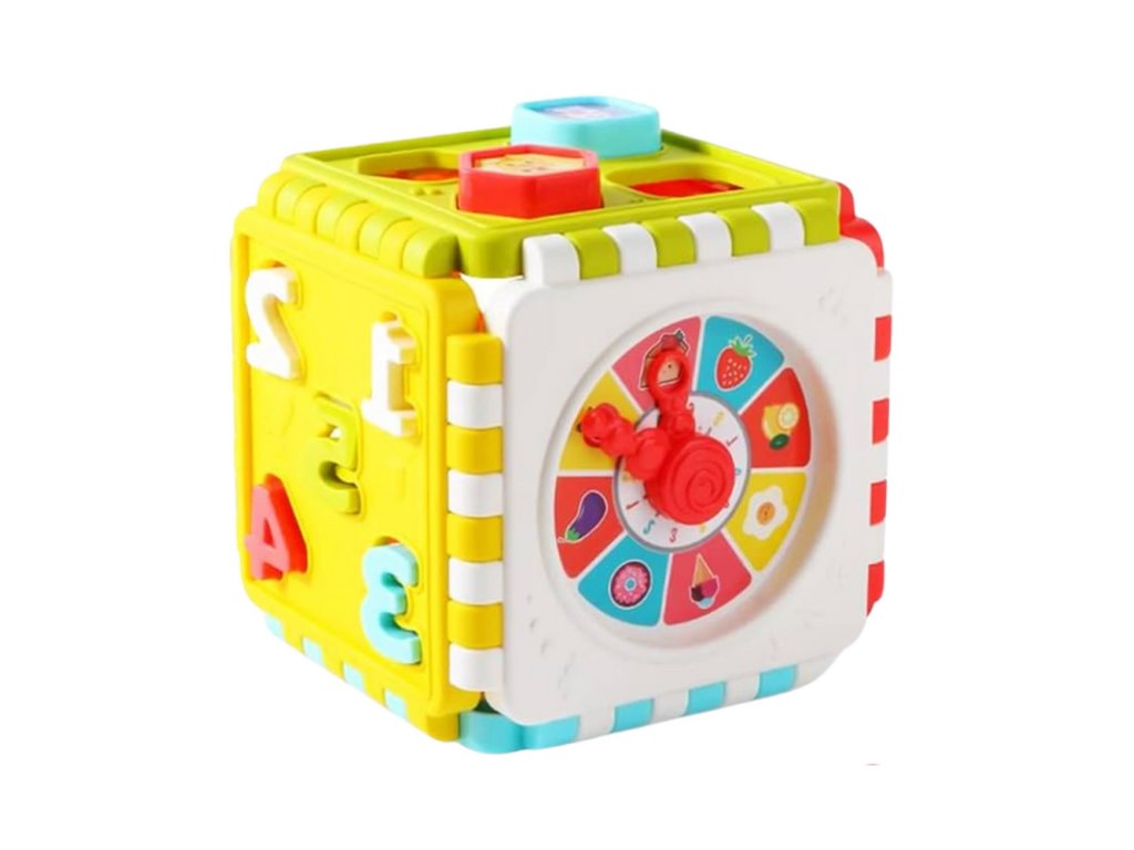 Vzdělávací třídicí kostka je skvělý nápad pro nejmenší děti, které se učí hrou. Kostka byla navržena tak, aby podporovala rozvoj manuálních, kognitivních a logického myšlení dítěte. Díky různým stěnám s úkoly má batole mnoho příležitostí objevovat, porovnávat a experimentovat.