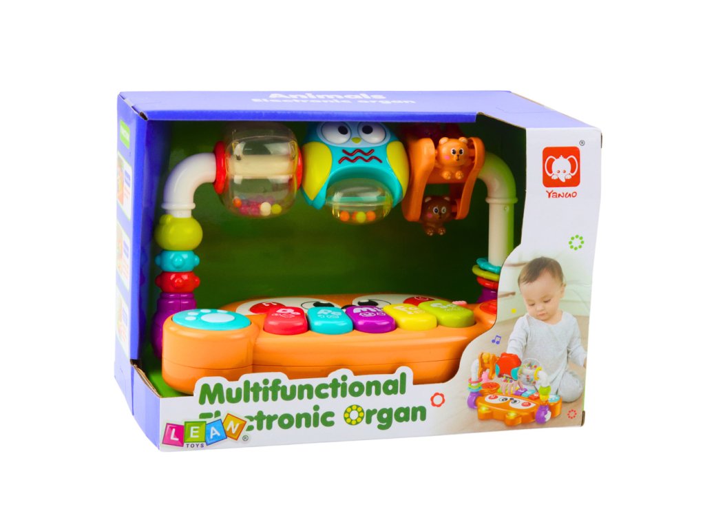 Vzdělávací pianko – interaktivní chrastítka, sova, oranžová