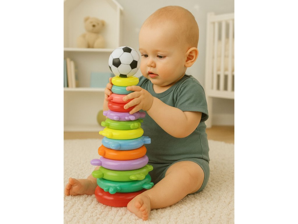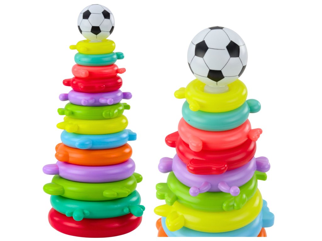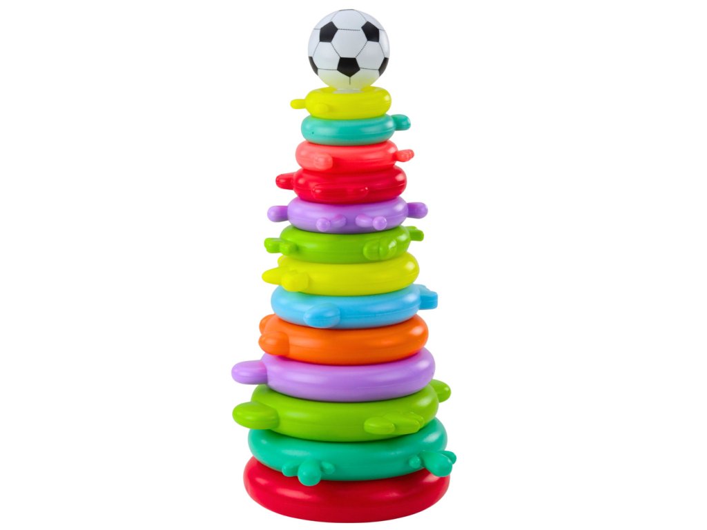 Tato vzdělávací pyramida je barevná a rozvíjející hračka určená pro malé děti, které milují skládání hádanek, třídění a praktické hraní. Model se skládá ze 13 úrovní v podobě barevných obručí, které děti řadí od největší po nejmenší a vytvářejí tak vysokou a stabilní konstrukci. Na vrcholu pyramidy je umístěn lehký míč, který skládá skládačku a povzbuzuje k další hře.