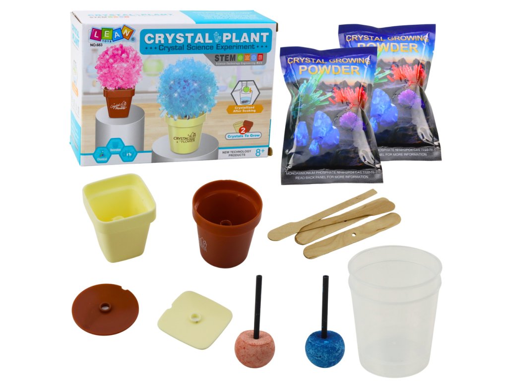 Sada pro pěstování krystalů Crystal Plant je fascinující vědecká hra, která jedinečným způsobem kombinuje vzdělávací, kreativní a experimentální prvky. Díky ní mají děti možnost samy provést proces krystalizace a vytvořit tak efektní, barevné „rostliny“ připomínající květiny vyrůstající z květináče. Je to skvělý způsob, jak přístupnou a atraktivní formou představit těm nejmenším svět chemie a přírodních jevů.