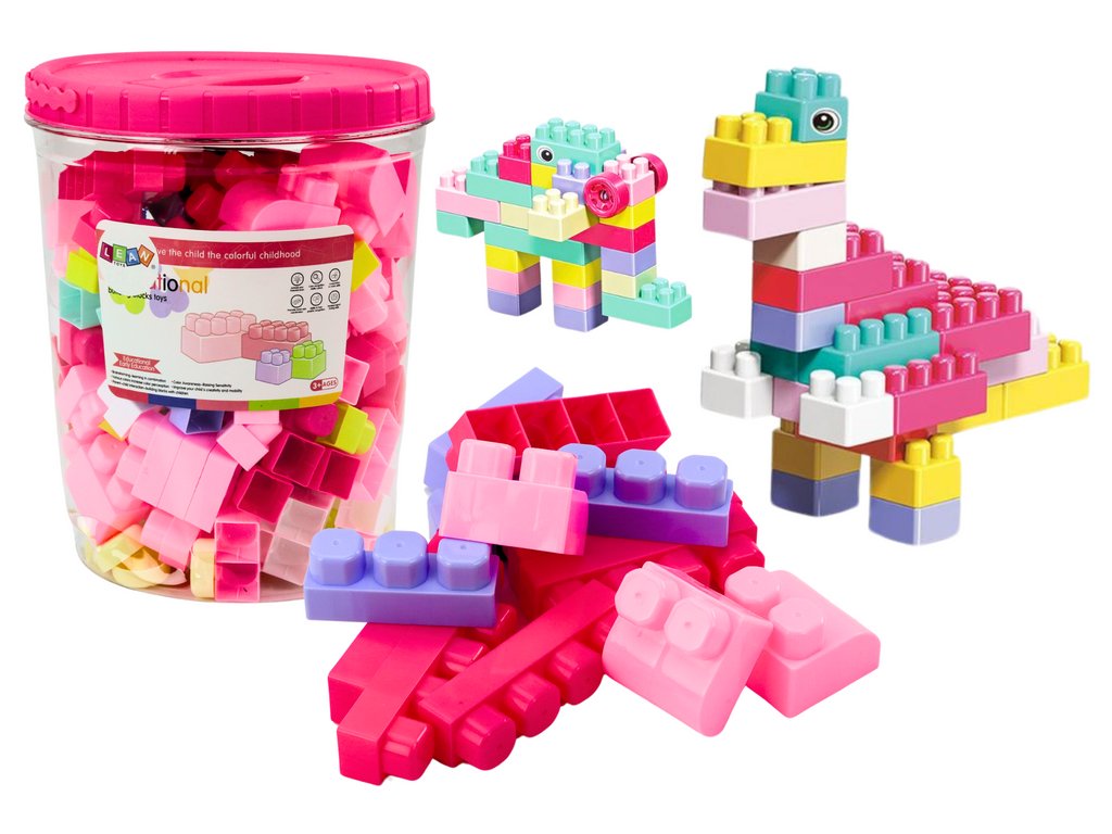 Vzdělávací sada velkých stavebních kostek v kyblíku růžová 160 ks.