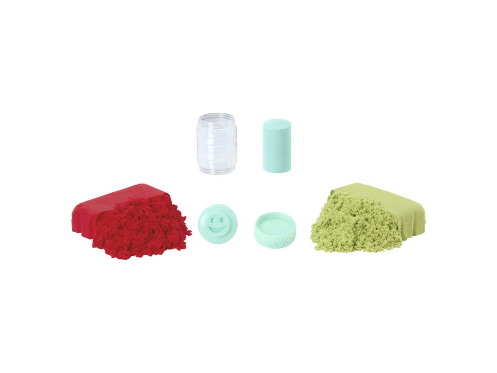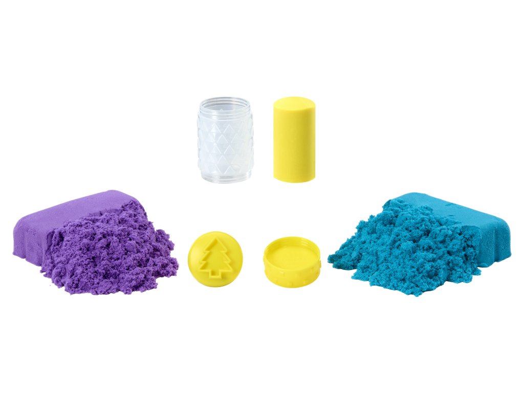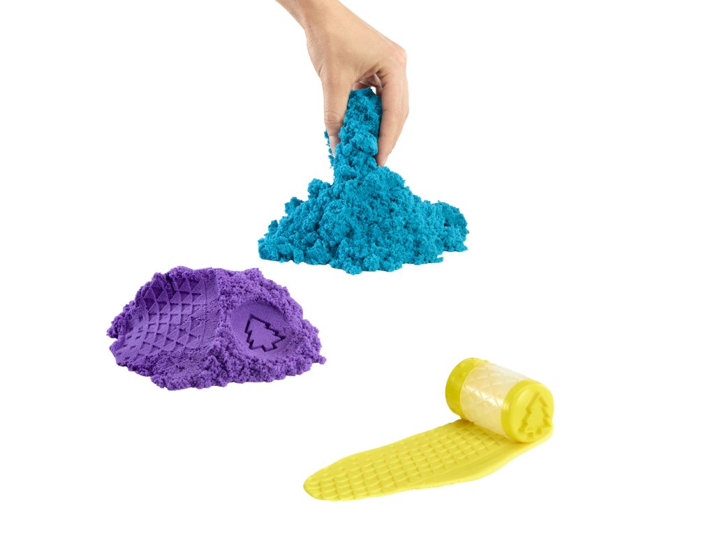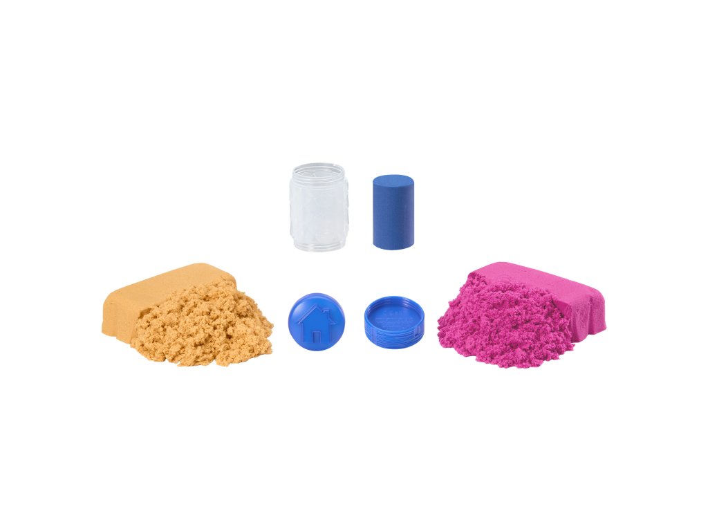 Sada se skládá ze dvou sáčků (celkem 907 g) kinetického písku. K dispozici ve 3 barvách: oranžová a růžová, modrá a fialová, červená a zelená. Balení obsahuje také váleček pro vytváření různých vzorů v písku.