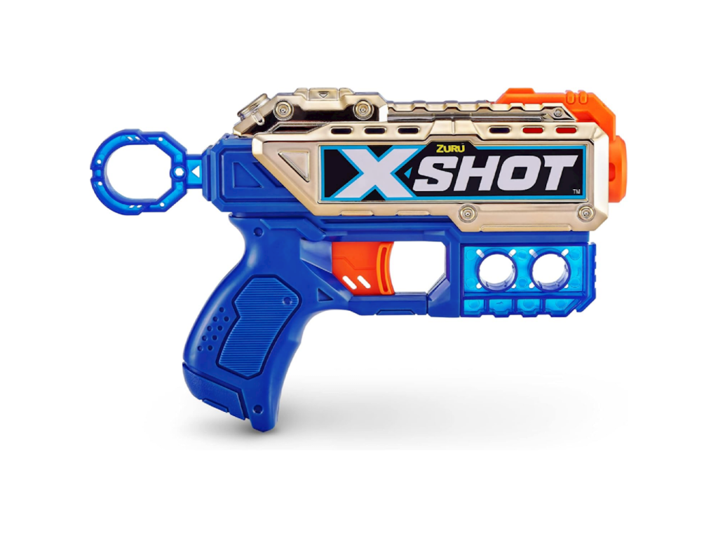 X-Shot Excel Royale Chrome Edition 2 kusy Reflex 6 + Kickback 36486XX-Shot Excel Royale Edition v chromově zlaté barvě je kombinací prémiového stylu a vysokého výkonu. Zlatá chromová povrchová úprava odlišuje tyto blastery od ostatních a dodává jim jedinečný, exkluzivní vzhled. Sada obsahuje dva modely – Reflex 6 a Kickback, které zaručují dynamickou a přesnou hru. Díky oceňovaným aerodynamickým šipkám a dostřelu až 27 metrů poskytují blastery vynikající přesnost a sílu. Model Kickback je navíc vybaven funkcí zpětného rázu pro větší realismus při střelbě.