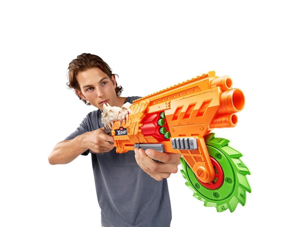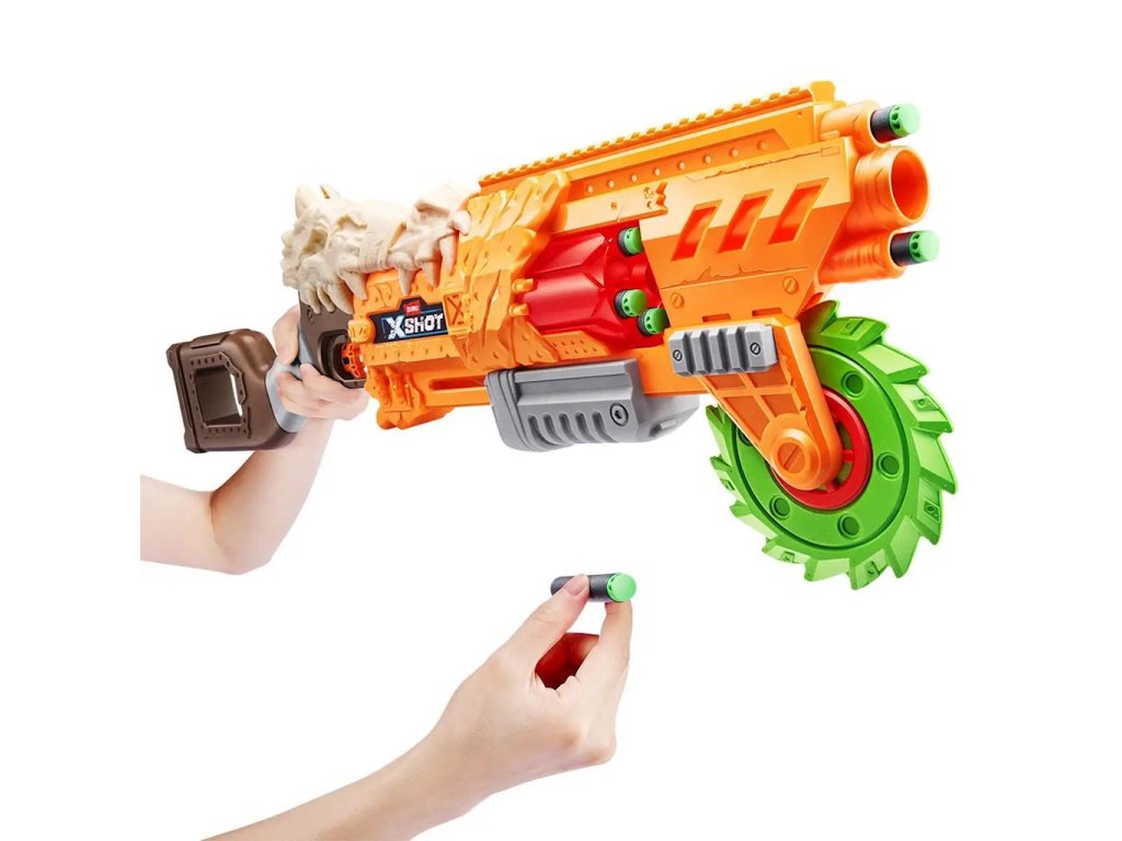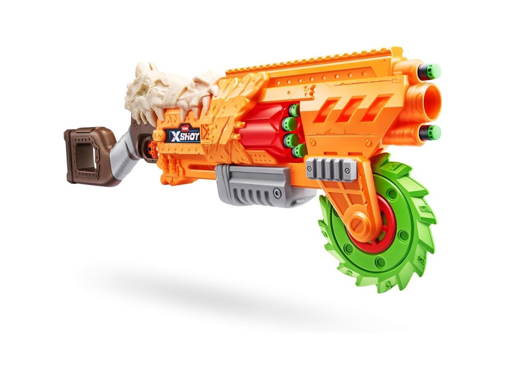 X-Shot Mega Insanity Horrorfire Doomsday 36732 + 30 šipek pro Nerf Soft HeadŠílenství se vyvinulo! Soudný den začal! Vydejte se do boje na X-Shot Insanity HorrorFire Doomsday! Rotující pilový kotouč vystřelí pokaždé, když znovu nabijete zbraň. 8ranný rotační zásobník a 16ranná technologie Air Pocket vám zajistí vítězství v každé bitvě.