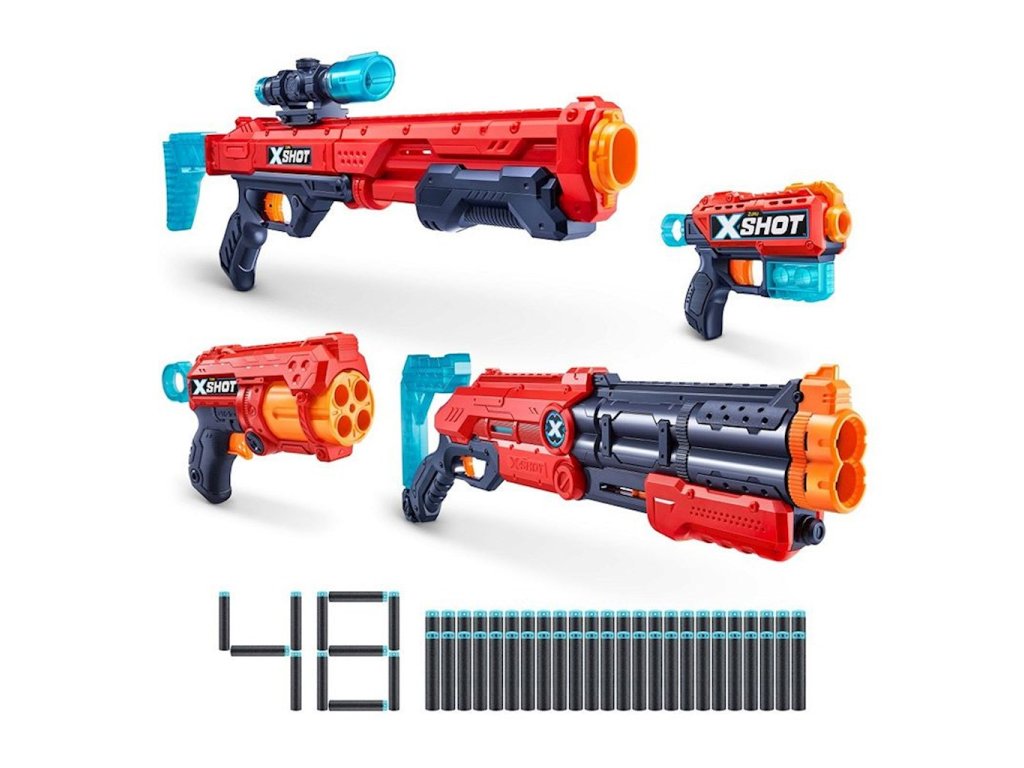 X-Shot sada 4 vystřelovačů Ultimate Shootout Pack 48 šipek 6 plechovek 36251