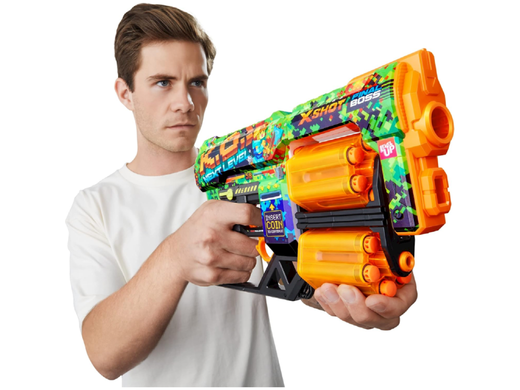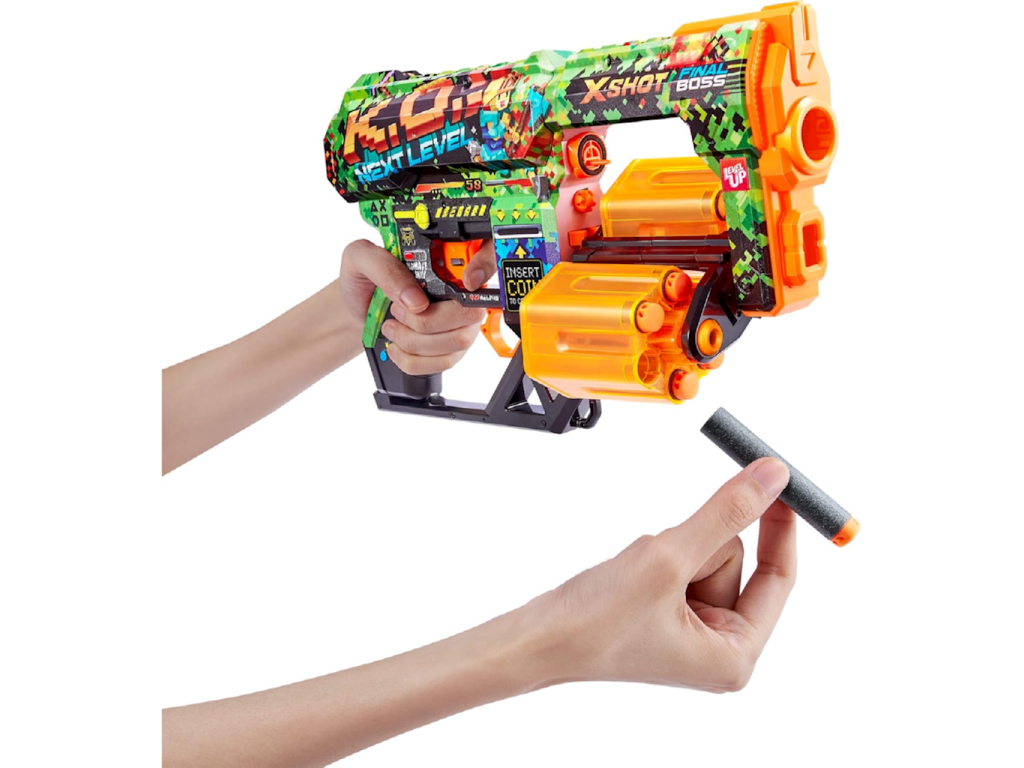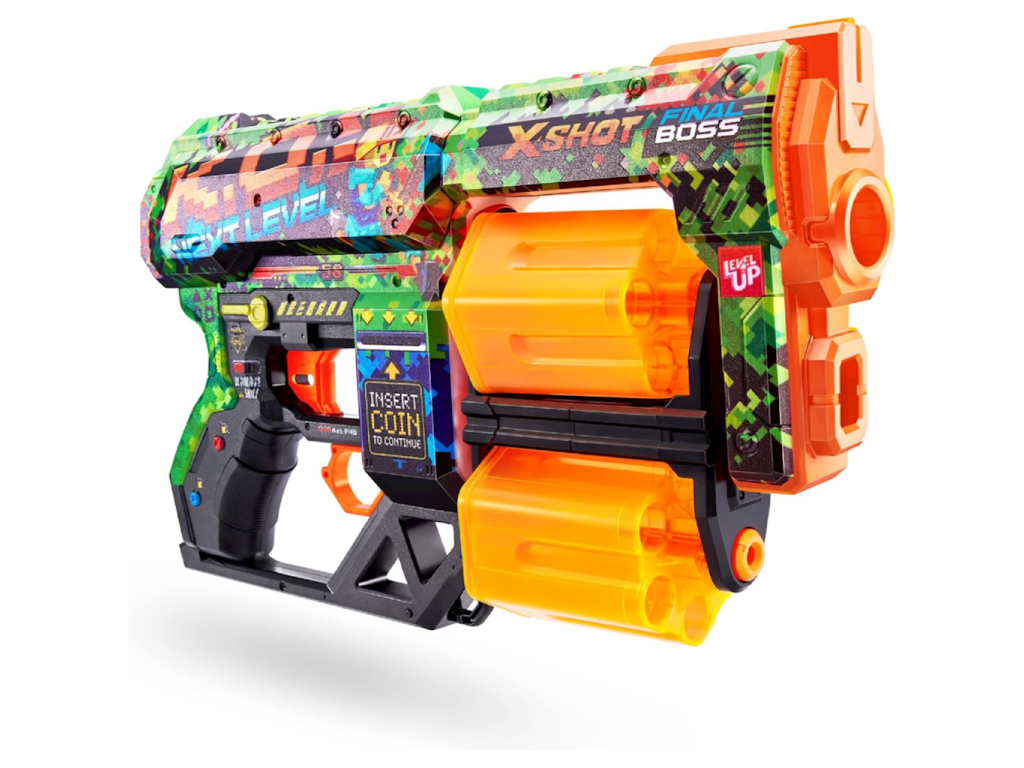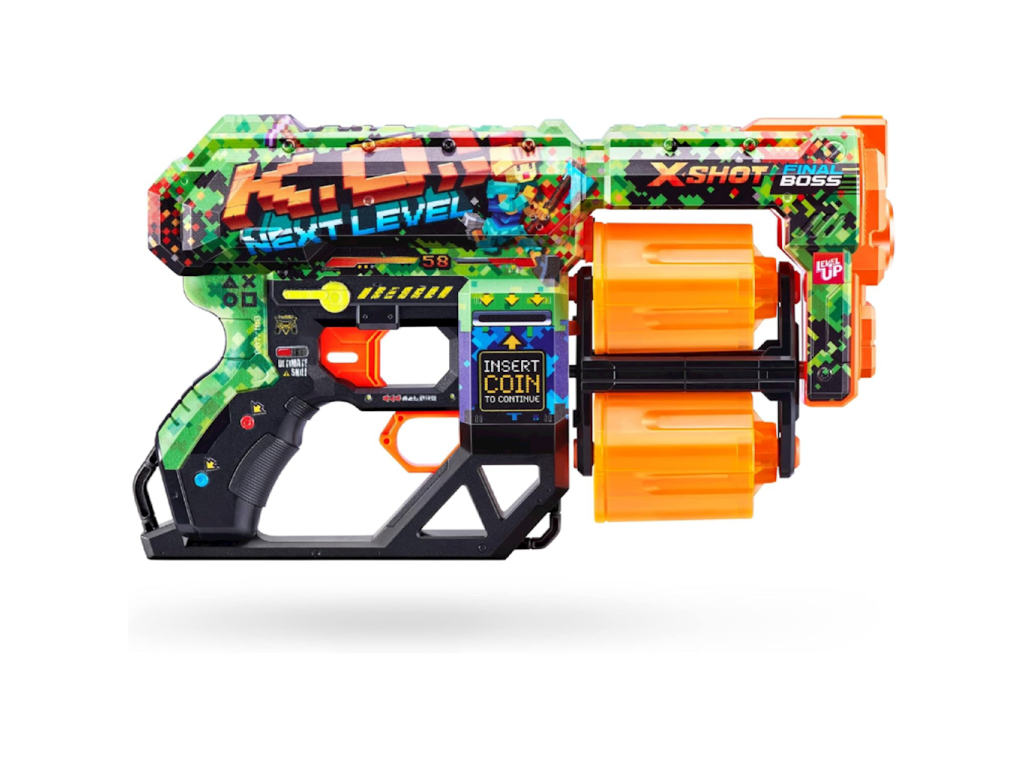 X-Shot Skins Dread ecopak 36552BX-Shot Skins Dread je moderní blaster, který kombinuje výjimečný design s vysokým výkonem. Díky pokročilé technologii tisku si můžete vybrat z několika unikátních skinů a vyniknout na bojišti. Toto je první blaster X-Shot, který přináší styl „skinů“ známý z her přímo do reálného světa. Model Dread nabízí dvojnásobný výkon a ještě více možností – dvě otočné hlavně vám umožňují rychle přepínat a udržovat si výhodu nad soupeřem, aniž byste se museli zastavovat kvůli přebíjení.