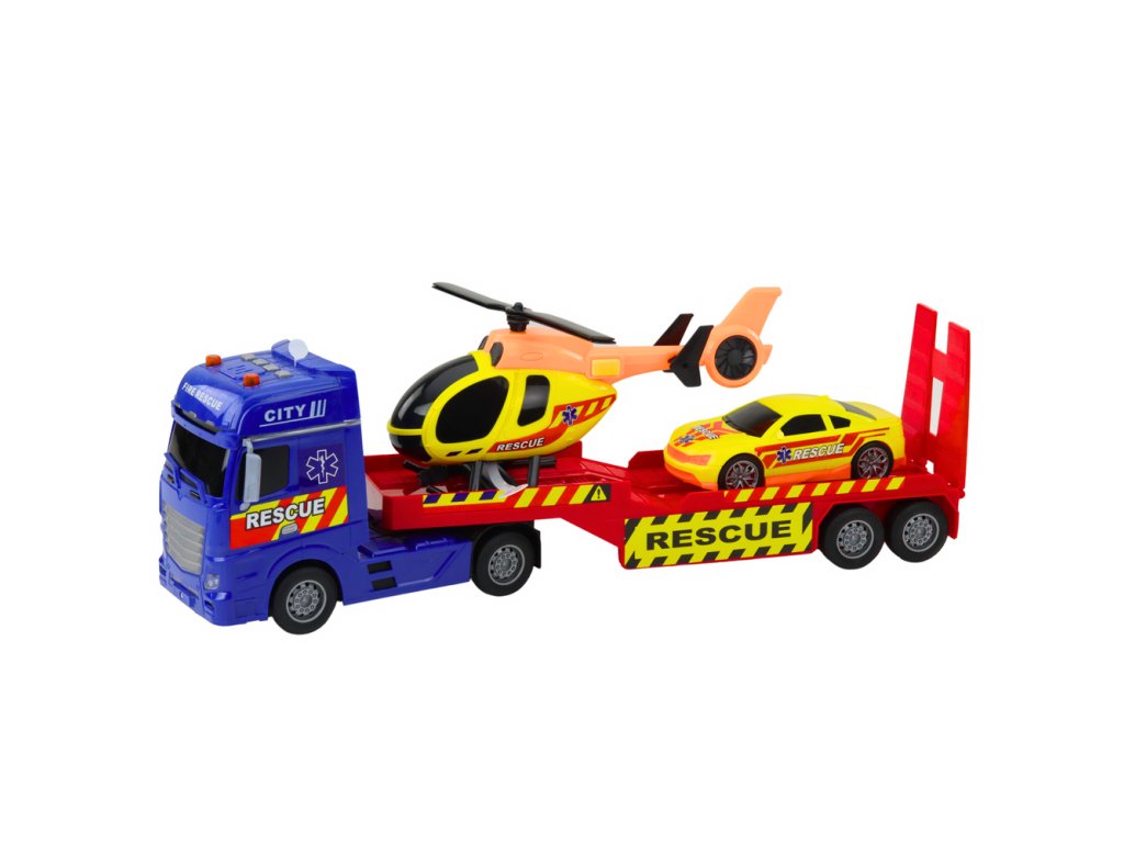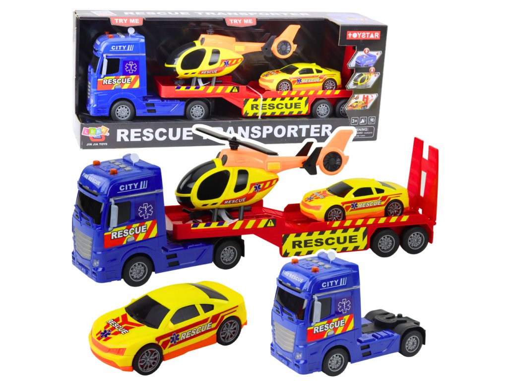 Záchranná sada je vzrušující nabídkou pro každého malého fanouška akce a záchranných služeb. Sada obsahuje tři realisticky vyrobená vozidla: velké nákladní auto s přívěsem, vrtulník s pohyblivými vrtulemi a sportovní vyprošťovací auto. Celá věc byla navržena s ohledem na intenzivní a bezpečnou hru – s důrazem na detail, barvy a funkčnost.