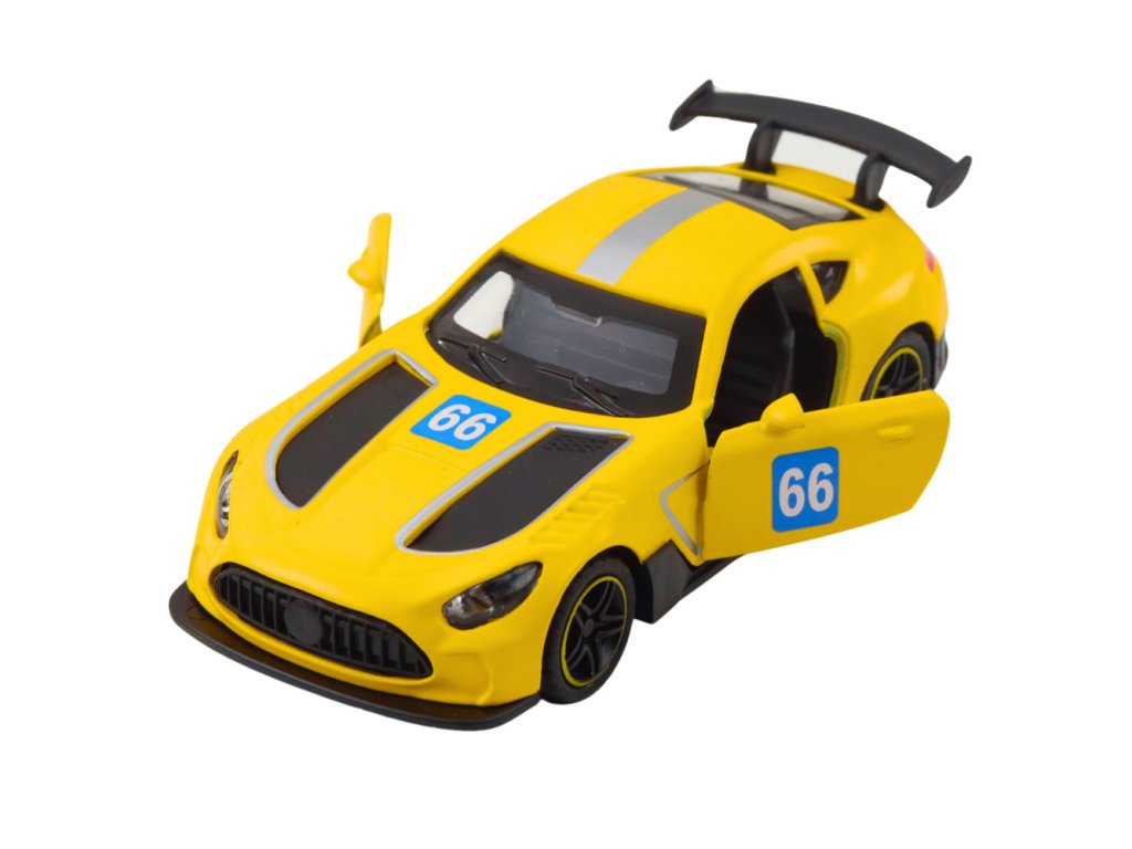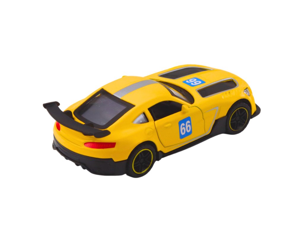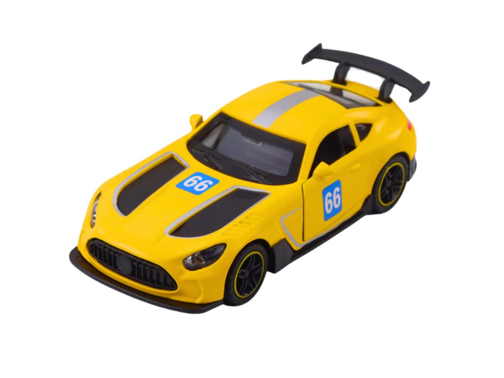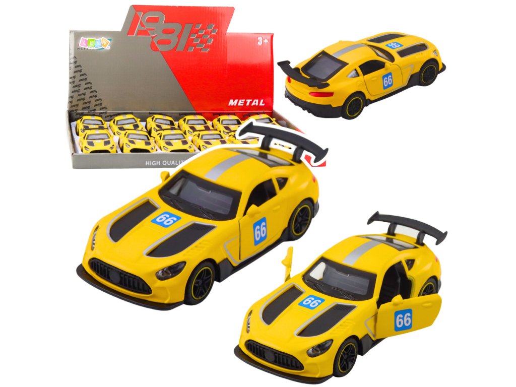 Závodní auto – kovové, otevírací dveře, žluté, 1:43