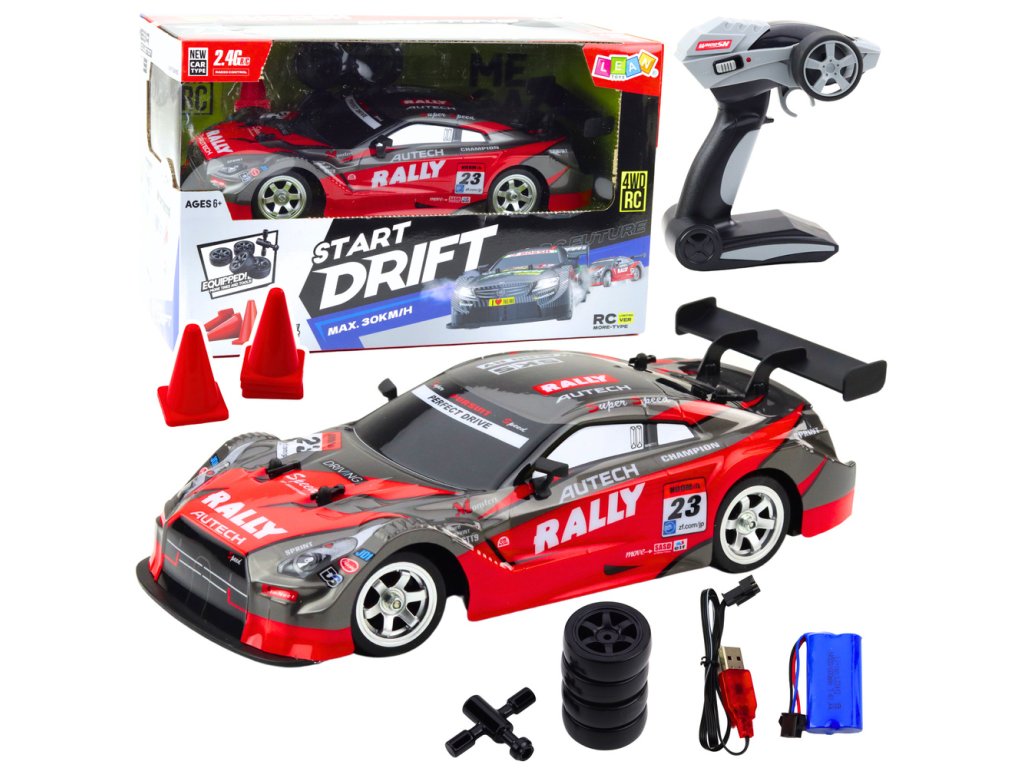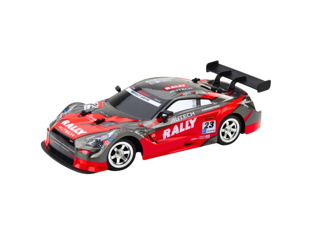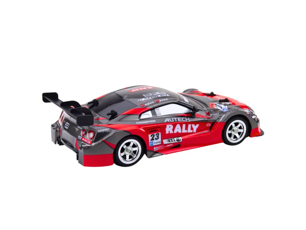 Dálkově ovládané RC závodní auto ve sportovním červeno-černém barevném provedení je dynamická hračka, která zaujme jak svým vzhledem, tak výkonem. Model navržený v měřítku 1:16 připomíná skutečný rally vůz – s agresivní linií karoserie, velkým spoilerem a výrazným značením. Díky pohonu všech čtyř kol a výkonné 7,4V baterii dosahuje vozidlo rychlosti až 30 km/h a je tak ideální volbou pro driftování a rychlou jízdu na různých površích.