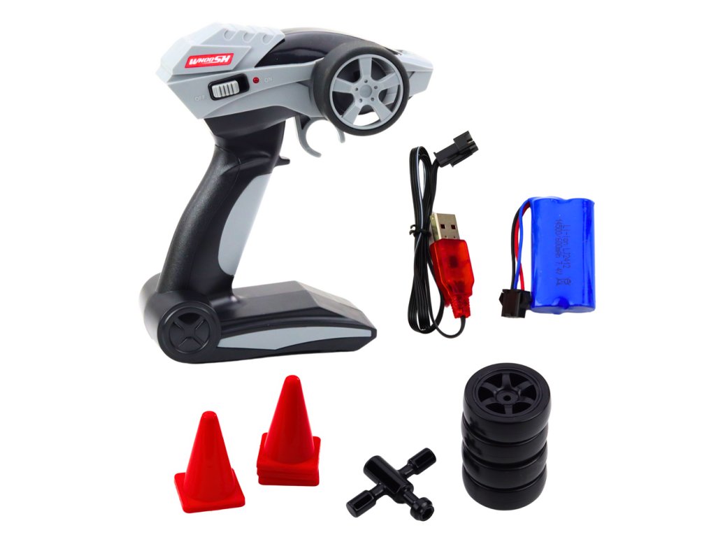 - Funkce: drift, jízda ve 4 směrech, LED světla, tlačítko turbo, vyměnitelné pneumatiky