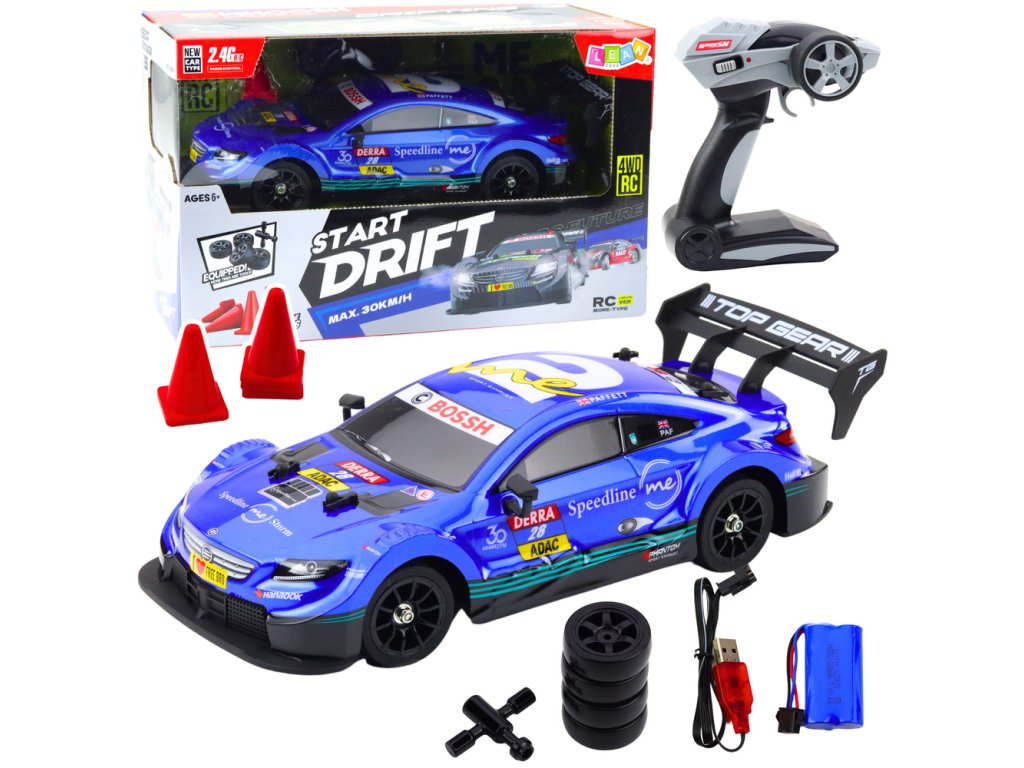 DÁLKOVÉ OVLÁDÁNÍ ZÁVODNÍHO VOZU DRIFT RC MODRÁ 1:16 30 KM/H LED PNEUMATIKY DÁLKOVÉ OVLÁDÁNÍ