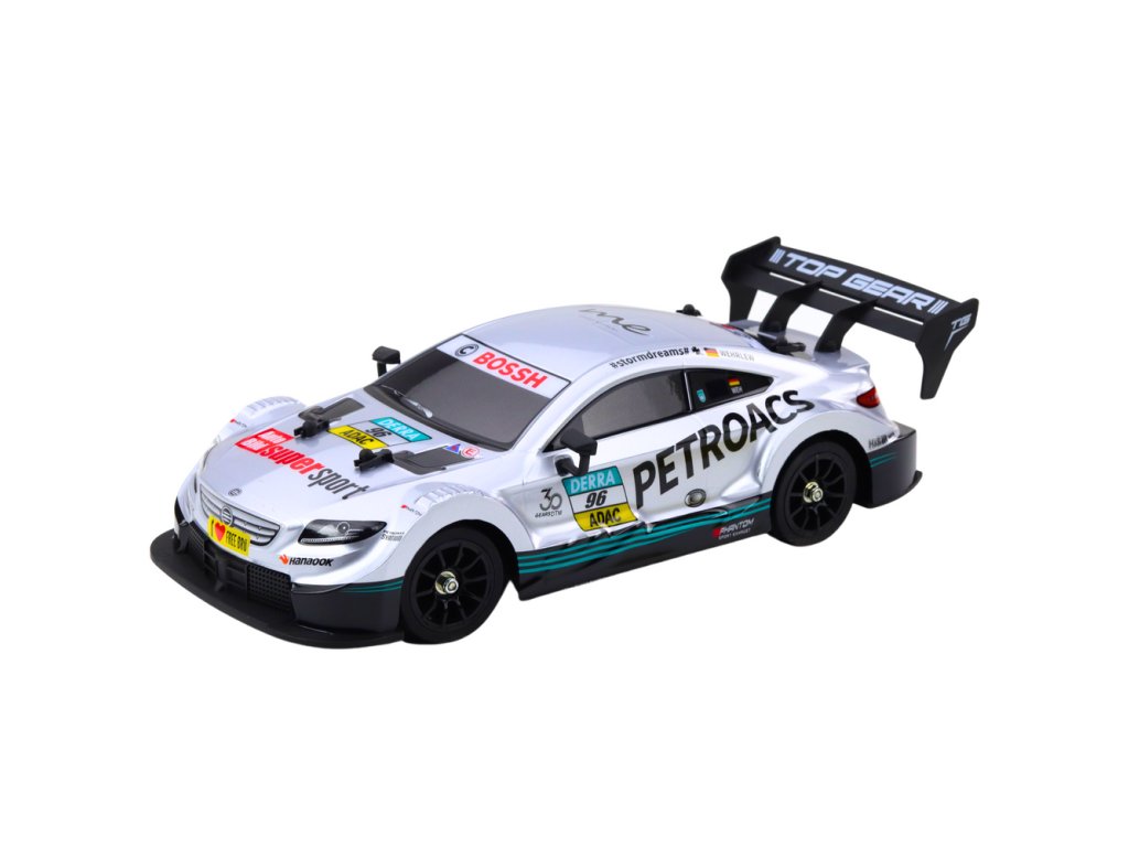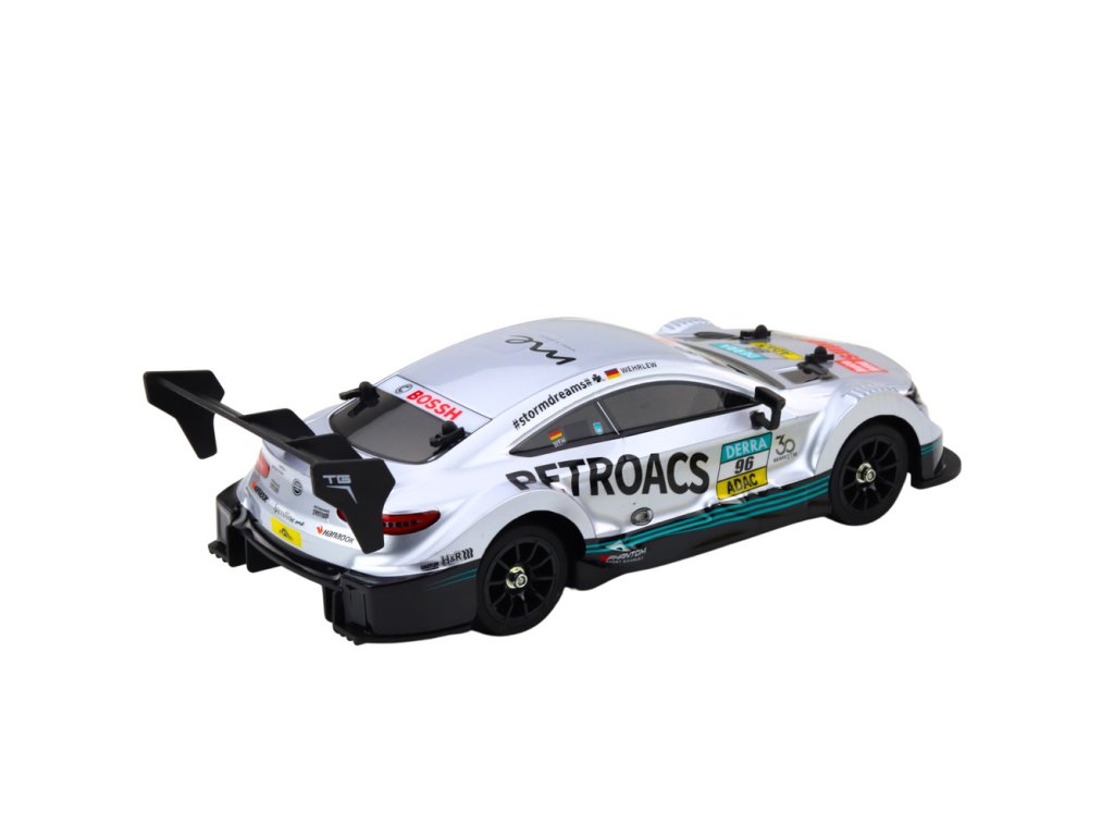 Dálkově ovládané závodní auto je dynamická hračka určená pro děti a mládež nadšené do motorismu. Model v měřítku 1:16 zaujme svým realistickým vzhledem a funkcemi, které poskytují maximální potěšení z jízdy. Agresivní silueta, aerodynamický tvar, závodní detaily a barvy v odstínech stříbrné dodávají vozidlu skutečně sportovní charakter.