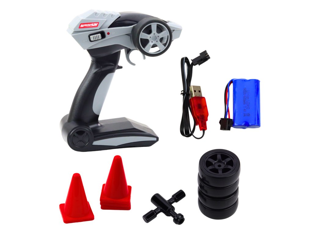 Díky výkonnému motoru a 7,4V baterii auto dosahuje rychlosti až 30 km/h. Dálkové ovládání 2,4 GHz umožňuje přesné ovládání v dosahu až 25 metrů. Vůz má LED osvětlení - přední, zadní a neony pod podvozkem - což zdůrazňuje jeho moderní vzhled a umožňuje jízdu po setmění. Sada obsahuje také přídavnou sadu pneumatik, klíč na jejich výměnu a kužely pro učení driftu.