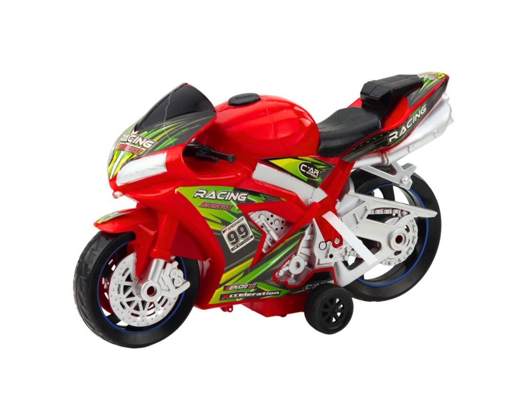 ZÁVODNÍ HRAČKA NA MOTOCYKL ČERVENÁ SE SVĚTELNÝMI A ZVUKOVÝMI EFEKTY