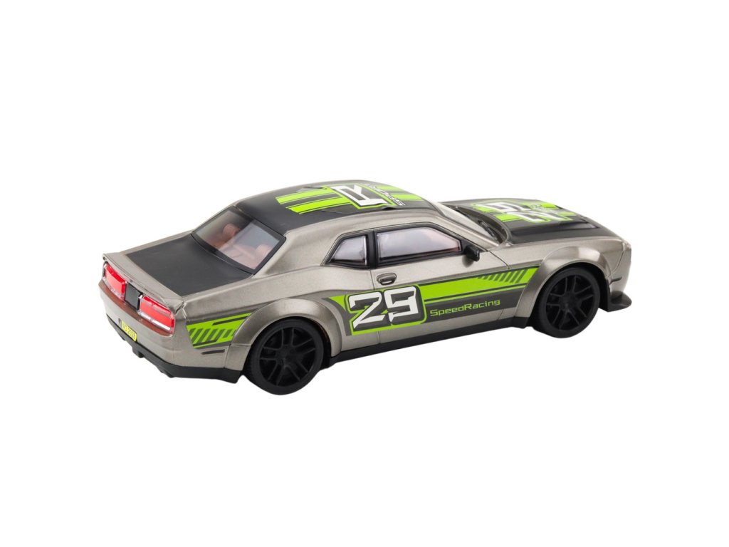 Závodní sportovní auto s pohonem zadních kol Stříbrno-zelené