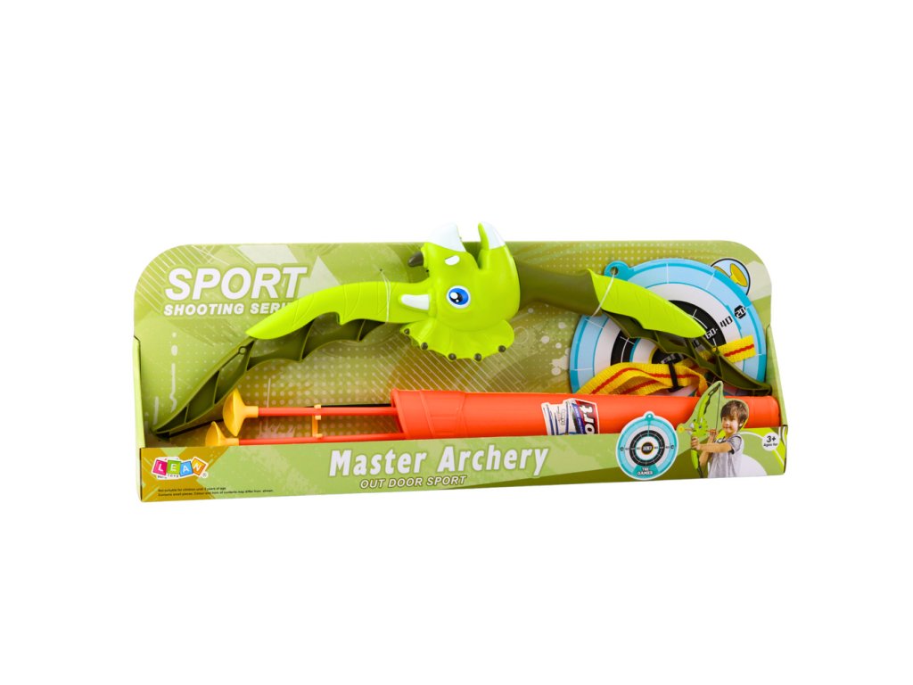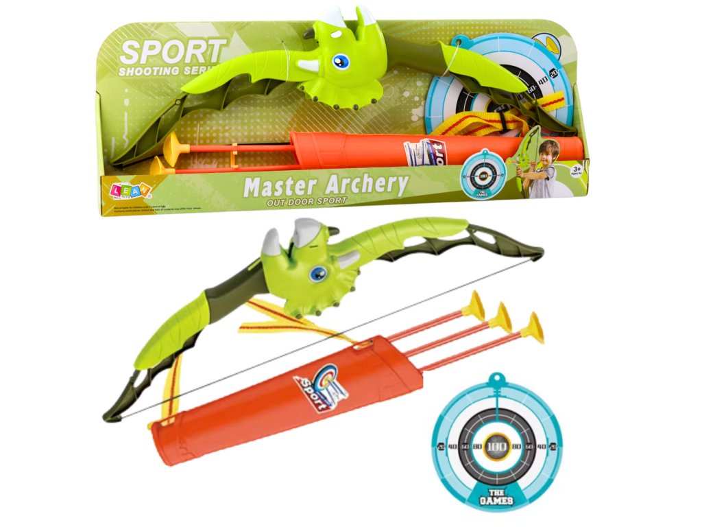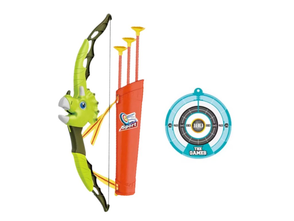 Zelený dinosaurus luk šípy s přísavkami štít