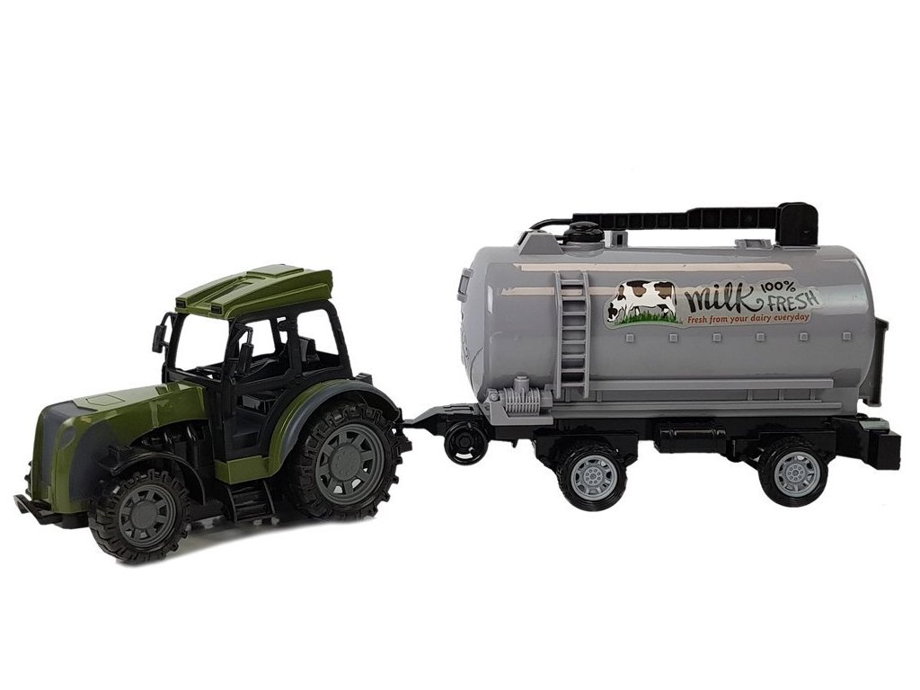 Traktor barevně reprodukuje svůj účel, navíc má odnímatelný přívěs, nádrž na mléko. Cisterna má otevírací plničku a hadici na mléko lze otáčet o 360 stupňů. Velká šedá nádrž na mléko s čerstvým mlékem přímo od krav. Hraní naučí vaše batole přesnosti, ale také rozvine jeho fantazii. Vytvoří různé scénáře a zapojí do zábavy svou rodinu.