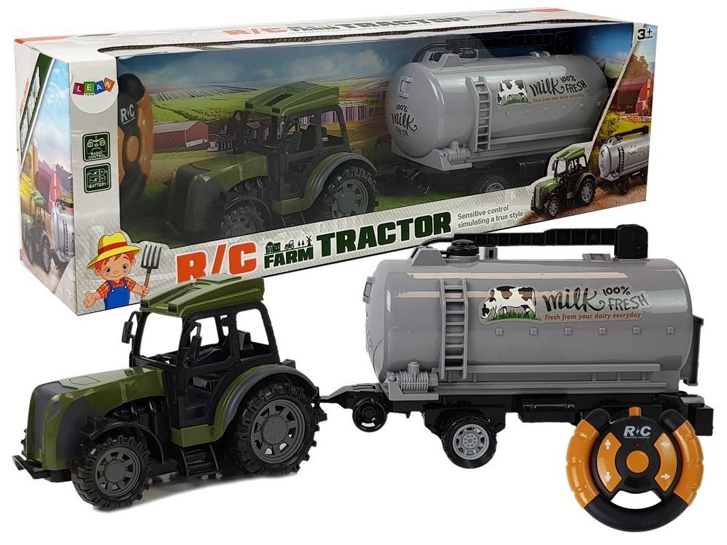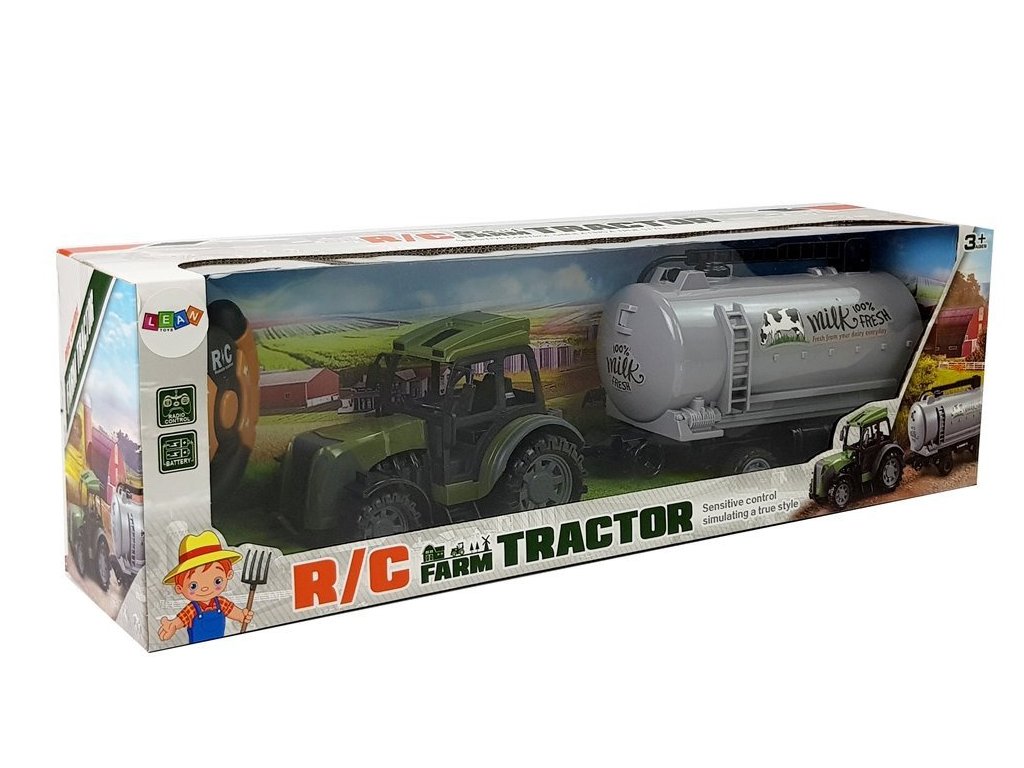 Zelený traktor s dálkovým ovládáním přívěsu na mléko 2,4G