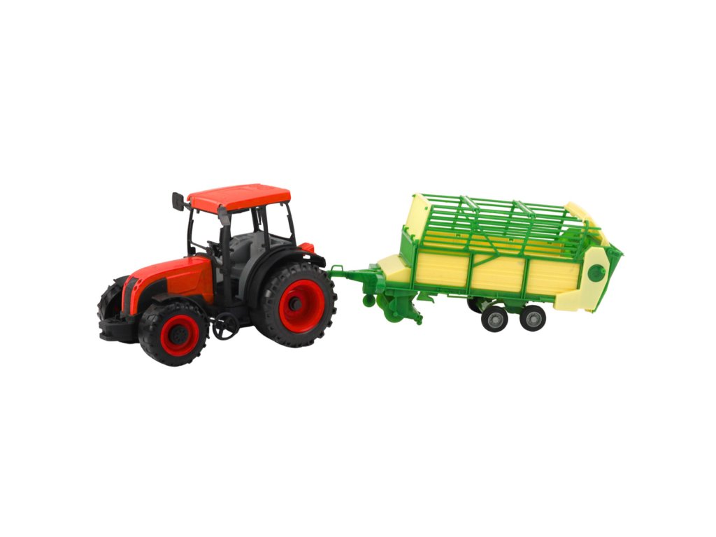 Traktor je vybaven pohonným systémem, který umožňuje vozidlu samostatný pohyb. Součástí sady je realistický přívěs s velkým nákladovým prostorem, který dětem umožňuje přepravovat různé drobné příslušenství. Sada je vyrobena z odolného a bezpečného plastu, což zajišťuje dlouhodobou a bezpečnou hru.
