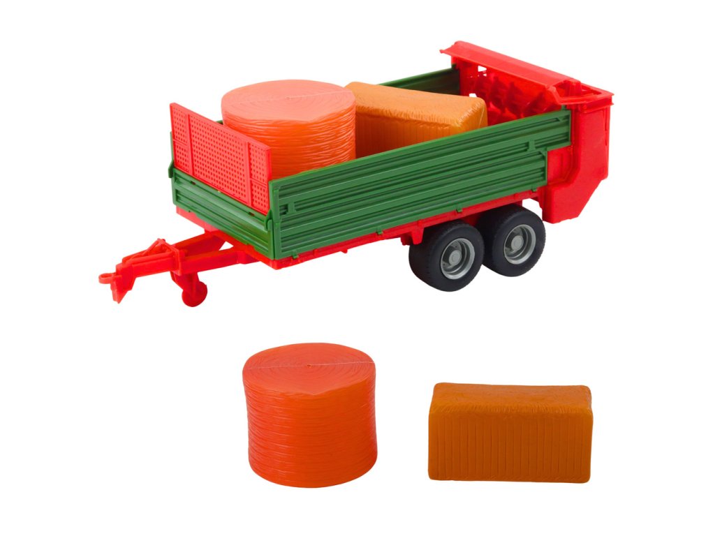 Zemědělský traktor se zeleným přívěsem a senem, červený 62 cm