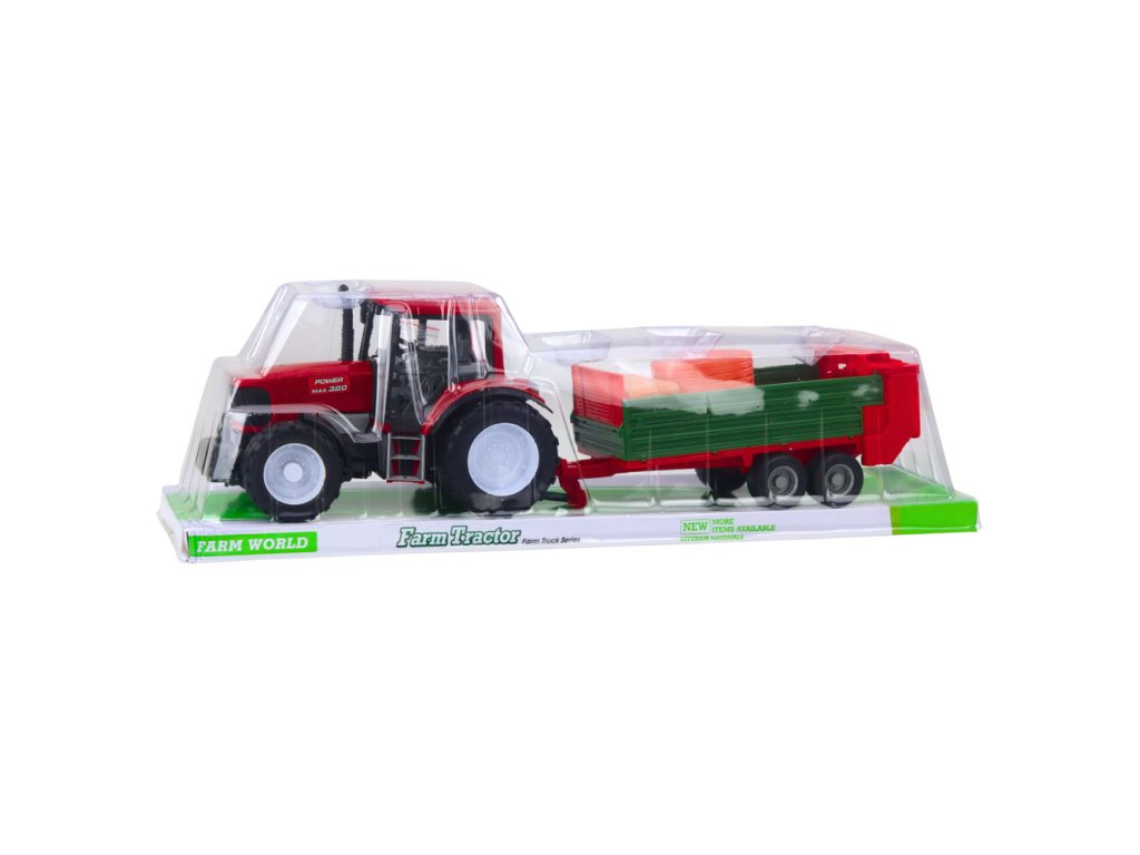Tento červený traktor se zeleným přívěsem a balíky sena je perfektní volbou pro děti, které se zajímají o zemědělské stroje a život na farmě. Tato hračka, navržená s důrazem na detail, věrně replikuje vzhled skutečného zemědělského traktoru. Díky svým velkým rozměrům je působivá a ideální pro tematické hraní.