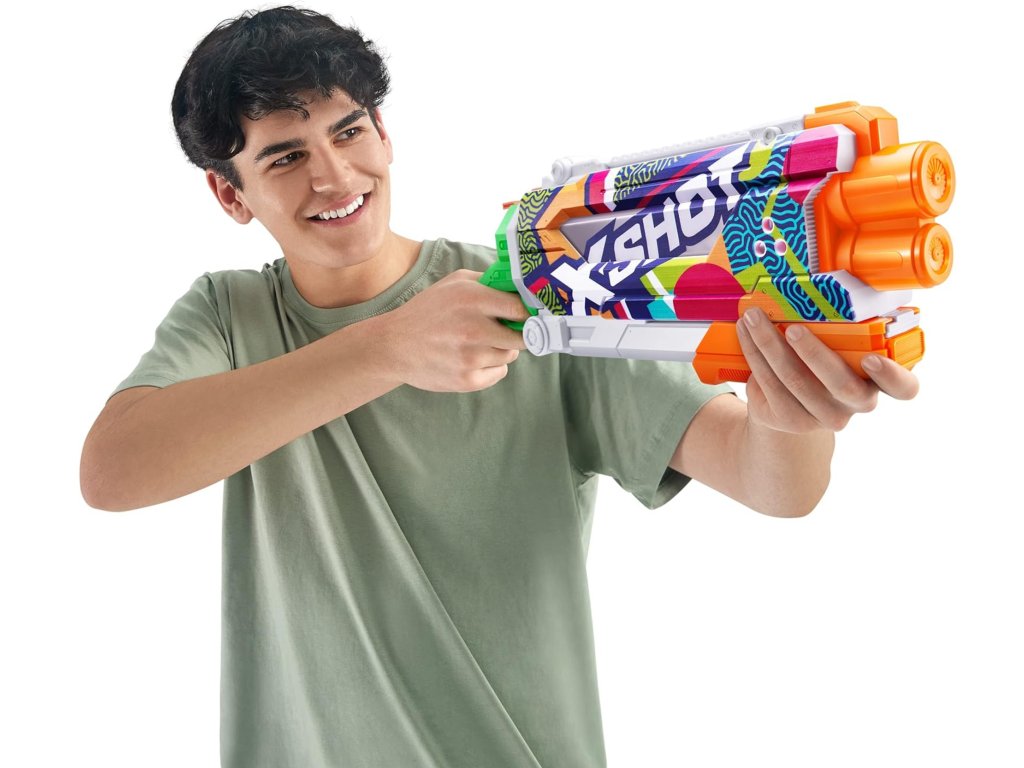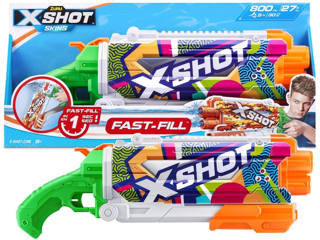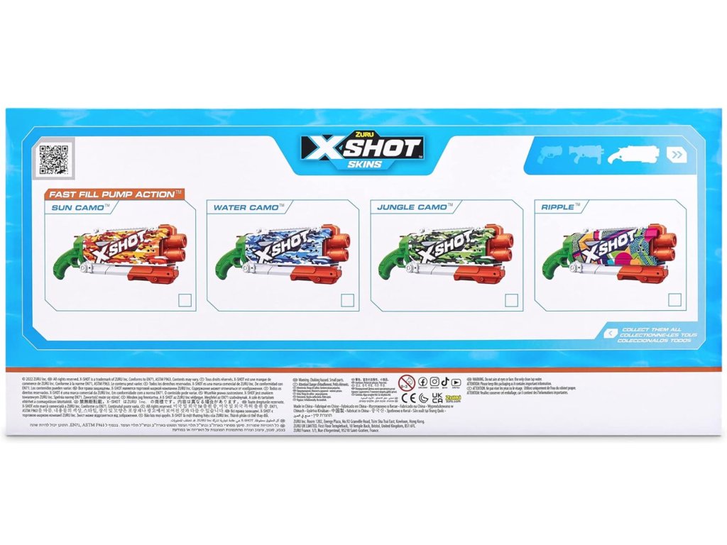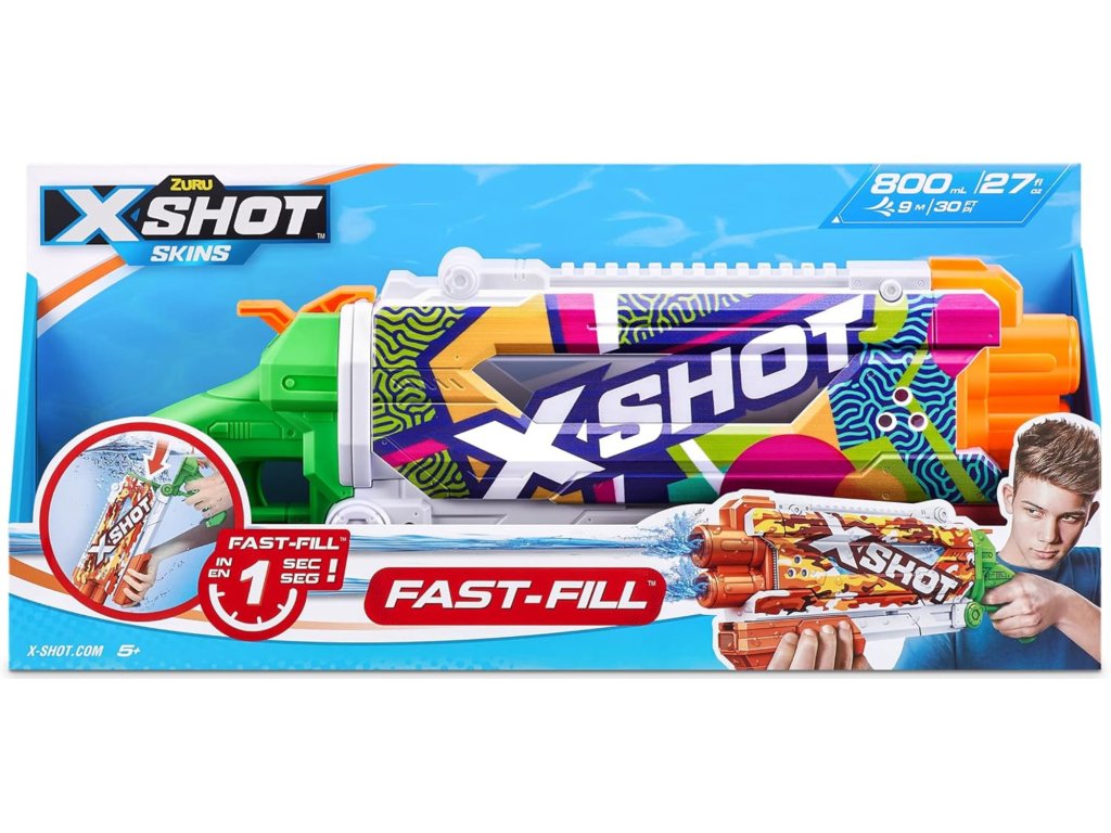 Moderní design s barevným potiskem Ripple a odolnými materiály umožňují Zuru X Shot Skins Fast-Fill nejen skvěle vypadat, ale také odolat intenzivnímu hraní venku. Je to skvělá volba pro každého fanouška letních her – jak na pláži, tak na zahradě.