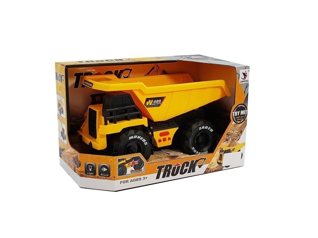 Je vyrobena z nejkvalitnějšího plastu, který zaručuje odolnost a bezpečnost při používání. Díky žluté a černé barvě vypadá vozidlo realisticky. Auto se pohybuje pomocí třecího pohonu, stačí zatáhnout vozík zpět a užívat si rychlost. Ve spodní části sklápěče jsou 4 tlačítka, díky kterým sklápěč vydává zvuky klaksonu, zvedání sklápěče, couvání a jiné. Navíc má světelné efekty, svítí světla v přední části vozu. Zábava na stavbě bude ještě atraktivnější! Písek, kameny či jiné materiály můžeme dopravit na různá místa.